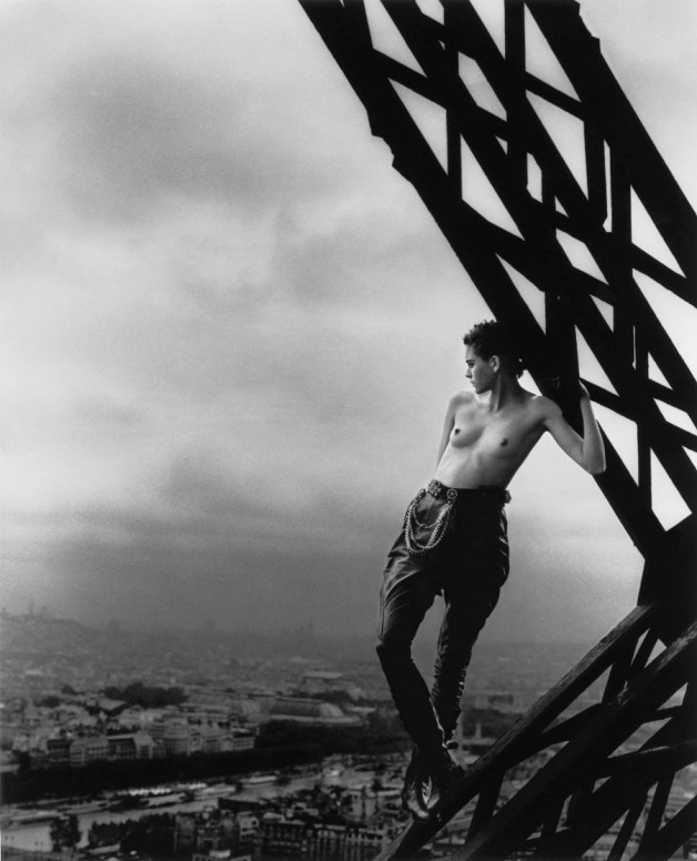 © Peter LINDBERGH, Mathilde on Eiffel Tower - Hommage à Erwin Blumenfeld et Marc Riboud - Rolling Stone Magazine Paris, 1989