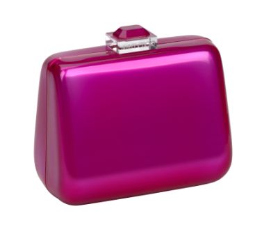 La minaudière « LANA » en résine Fuchsia avec son fermoir cabochon accompagnera nos soirées les plus chics.