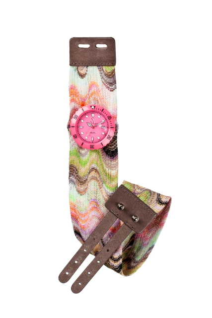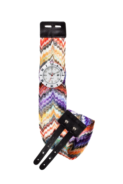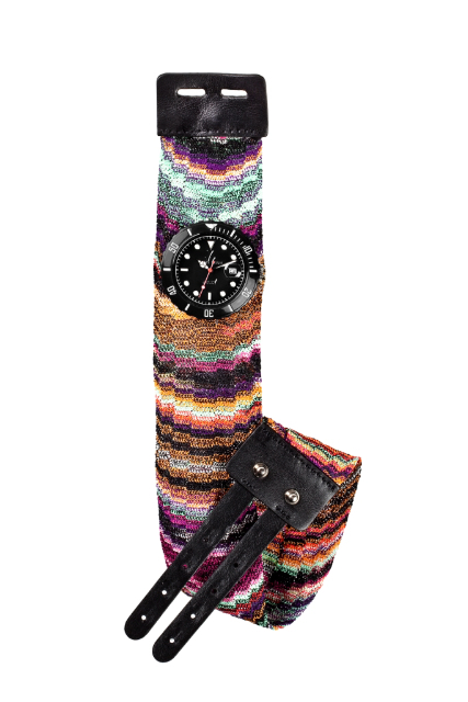 On reconnaîtra les 6 modèles produits en séries limitées de 250 exemplaires par leurs bracelets de tissus colorés tout en légèreté, signature de la maison italienne Missoni.