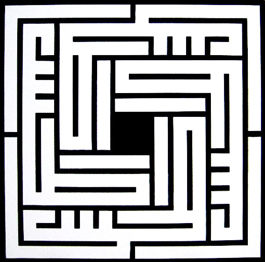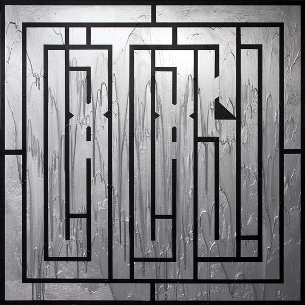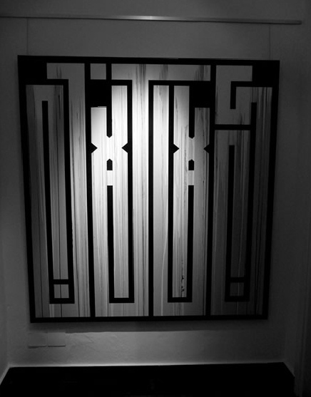 Réinterprétant l’alphabet latin en le soumettant aux techniques du Koufi, écriture arabe géométrique, L’ATLAS invente une écriture à la fois personnelle et universelle, très graphique, une nouvelle calligraphie dont il détient les codes et les clés. D’une grande force visuelle, cette nouvelle écriture reste en phase avec l’esprit de l’art urbain contemporain mais nous renvoie sans cesse à un motif récurrent : le labyrinthe tel une géographie du mot.