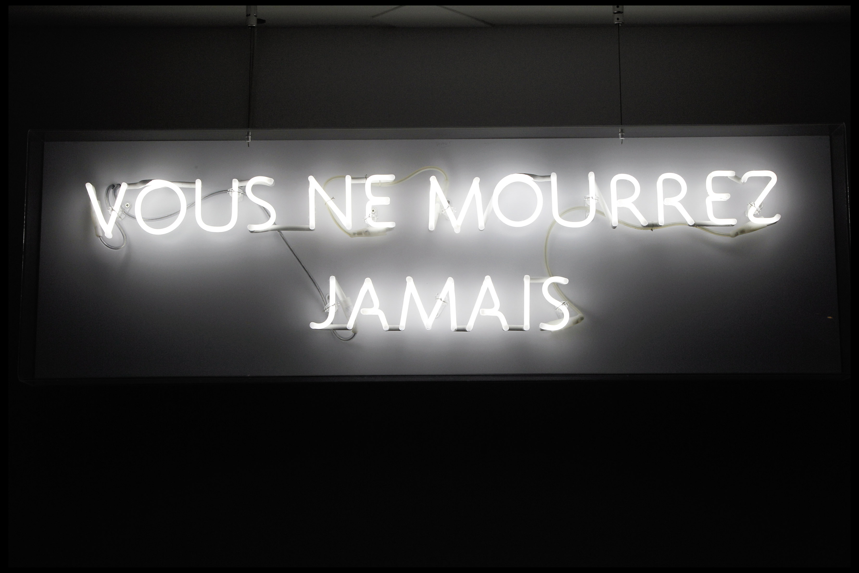 Laurent Pernot, 2010, Vous ne mourrez jamais, Néon, Fusain sur papier Courtesy Galerie Odile Ouizeman © Laurent Pernot