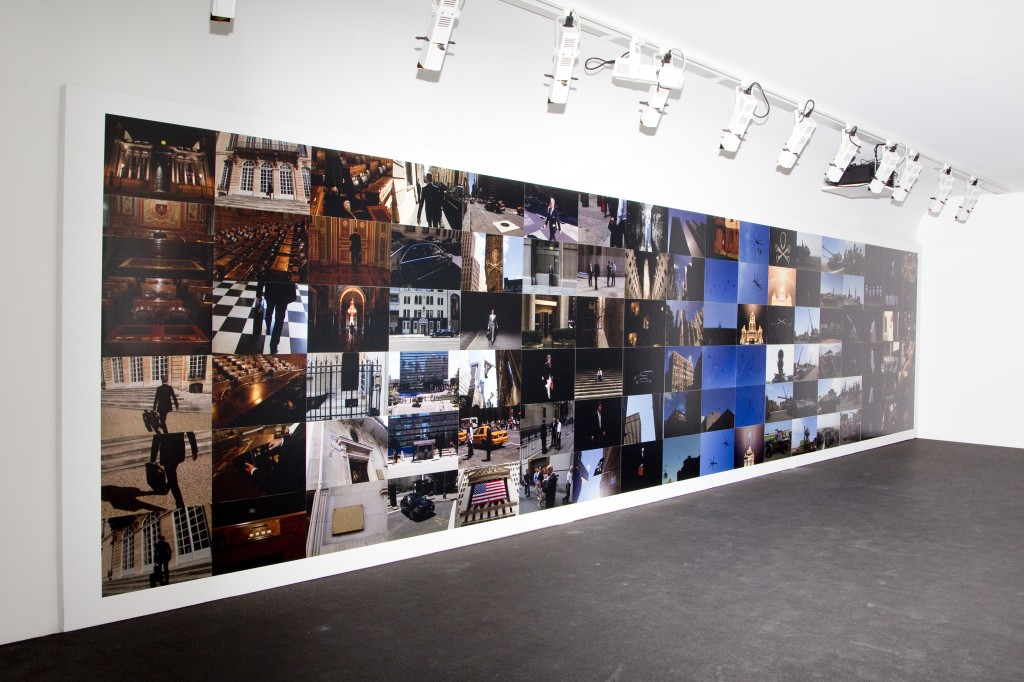 L’exposition débute par l’œuvre de l’artiste Grégoire Bourdeil qui nous propose une installation en plusieurs temps abordant le thème du pirate et la frontière entre le bien et le mal. Everland nous propose deux murs de photographies se répondant, l’un présentant une affiche d’un film inexistant tandis que l’autre contient des photos extraites du film et prises à Paris, Moscou et New-York, comme autant de preuves de l’infiltration d’une piraterie moderne dans les milieux financier, politique ou encore religieux.