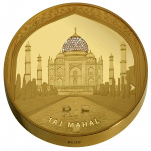 Afin de rendre hommage à ce monument exceptionnel, la Monnaie de Paris s’est associée à la Maison Cartier pour créer une monnaie de collection inédite d’un kilo d’or dans laquelle on retrouve l’harmonie des formes, l’élégance des lignes et la richesse des décors du Taj Mahal.
