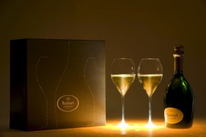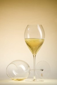 Si le verre ne fait pas le vin, il contribue sans conteste à en sublimer tous les attributs. On comprend alors aisément que chaque type de vin ait un verre particulier, étudié pour exprimer ses caractéristiques uniques. Pour le champagne, le verre se doit d’être suffisamment élancé pour pouvoir admirer la verticalité de son effervescence. Une qualité que l’on retrouve dans la flûte et que la coupe n’a pas. Mais les bulles, aussi fines et légères soient elles, ne sont pas les seules qualités distinctives du champagne. La robe, le bouquet et les notes aromatiques appréciés par l’oeil, le nez et la bouche sont tout aussi révélateurs d’un bon champagne. Dessiner le verre à champagne idéal relève de l’art d’un dégustateur hors pair. C’est le cas de Philippe Jamesse, Maître Sommelier au restaurant Les Crayères à Reims, qui a mis au point ce verre, parfaitement adapté à la dégustation du « R » de Ruinart. Croisement parfait entre flûte et verre à dégustation, il conjugue selon son créateur trois éléments essentiels à la dégustation du champagne dans les règles de l’art : l’espace, le temps et le respect. L’espace au libre mouvement du vin, le temps pour qu’il s‘exprime pleinement et le respect du savoir faire du Chef de caves. Sa ligne élancée est un écrin pour l’effervescence et la robe de la cuvée. Sa base plus ronde et évasée, son galbe étudié, son ouverture plus large que celle de la flûte permettent de mieux aérer le vin et d’offrir au nez et à la bouche toute sa finesse et sa complexité aromatique. Nul doute que le coffret «R» de Ruinart révèlera en chaque amateur des talents de dégustateur insoupçonnés…
