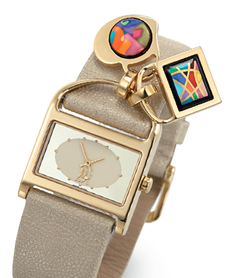 « Princess Victoria » se compose d’un élégant bracelet en cuir, d’un cadran rectangulaire ainsi que d’un mécanisme Suisse. Les charm’s sont en émail décorés d’or et réalisés en Autriche.