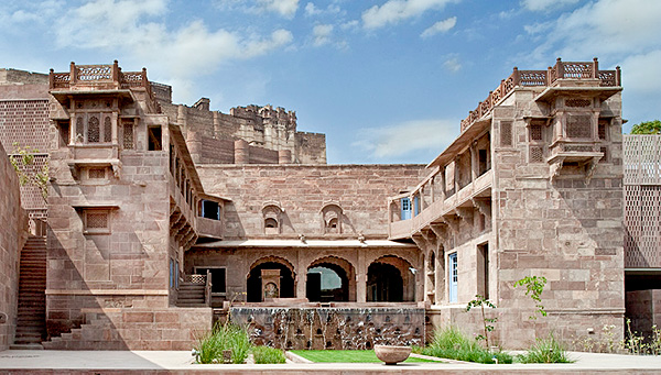 RAAS, is an elegant and grand 300-year-old mansion situated in the heart of Jodhpur. Local brothers Nikhilendra and Dhananajaya Singh have brilliantly restored the heritage buildings, creating the first and only luxury hotel within an Indian walled city. The 39-room hotel comprises three restored 18th century buildings in Jodhpur’s very own ‘rose-red’ sandstone. They are combined with four new buildings which have been designed by the acclaimed Delhi-based architect Ambrish Arora and Rajiv Majumdar.