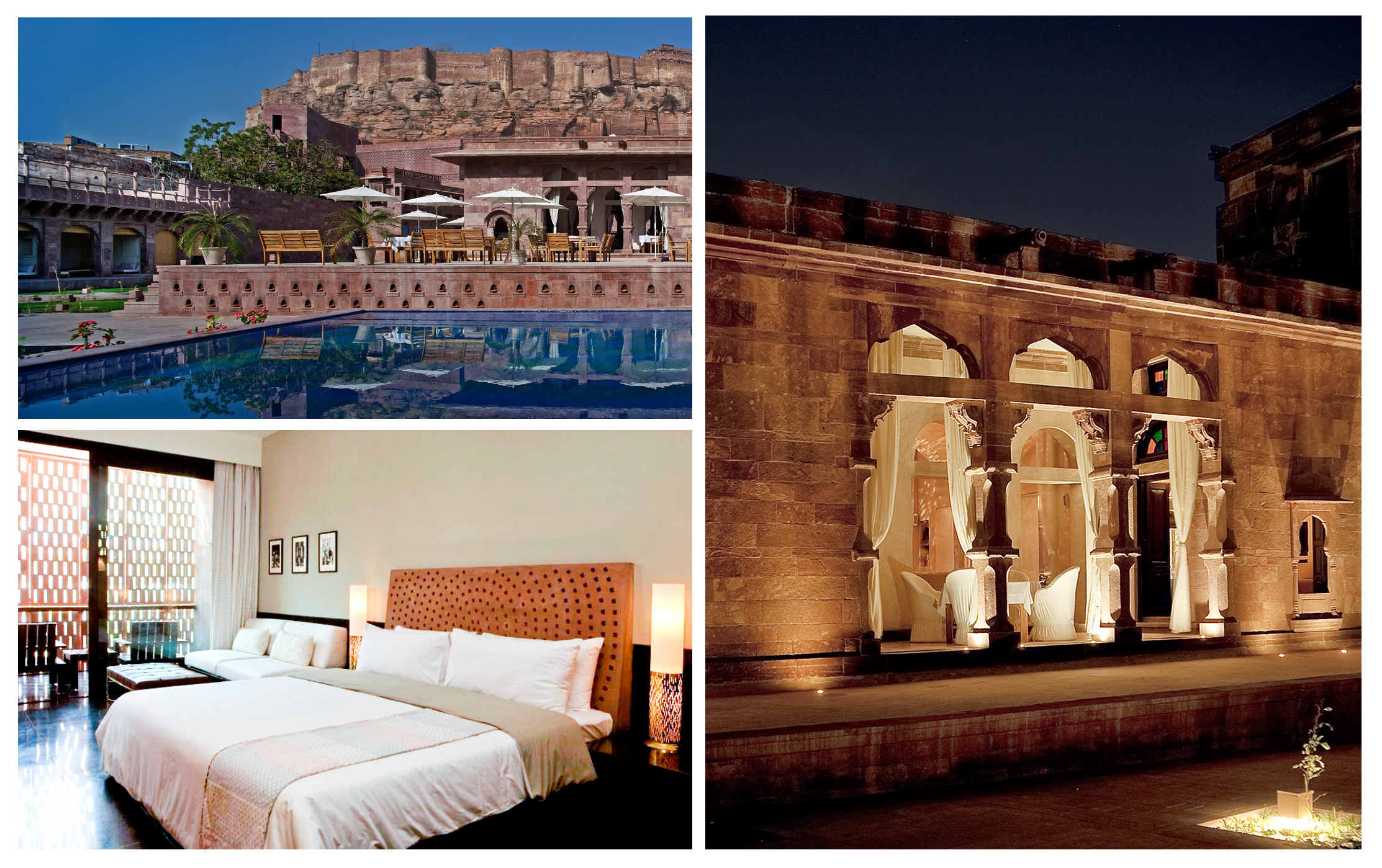 Entering through an imposing stone gate, guests are led into a peaceful, spacious inner courtyard which is home to Mughal-style terraced gardens and a stunning infinity pool. A cozy, elegant terraced dining room is nearby, while the café and the al fresco terrace line one side of the property. A range of activities are also on offer, from rides through the city in the hotel’s own Tuk Tuks to camel safaris and desert picnics.