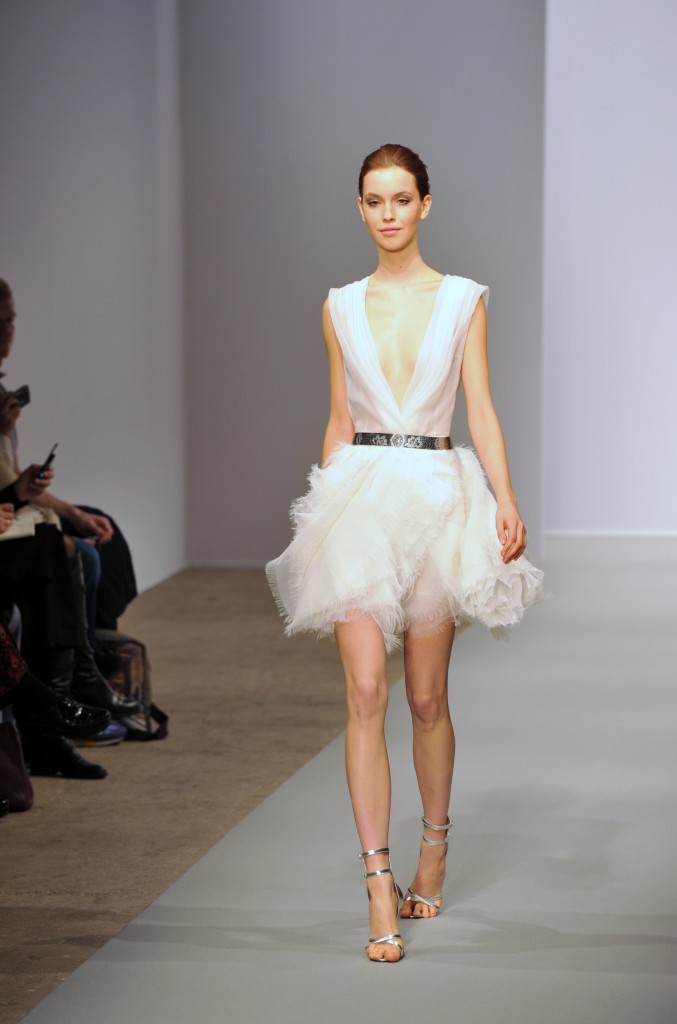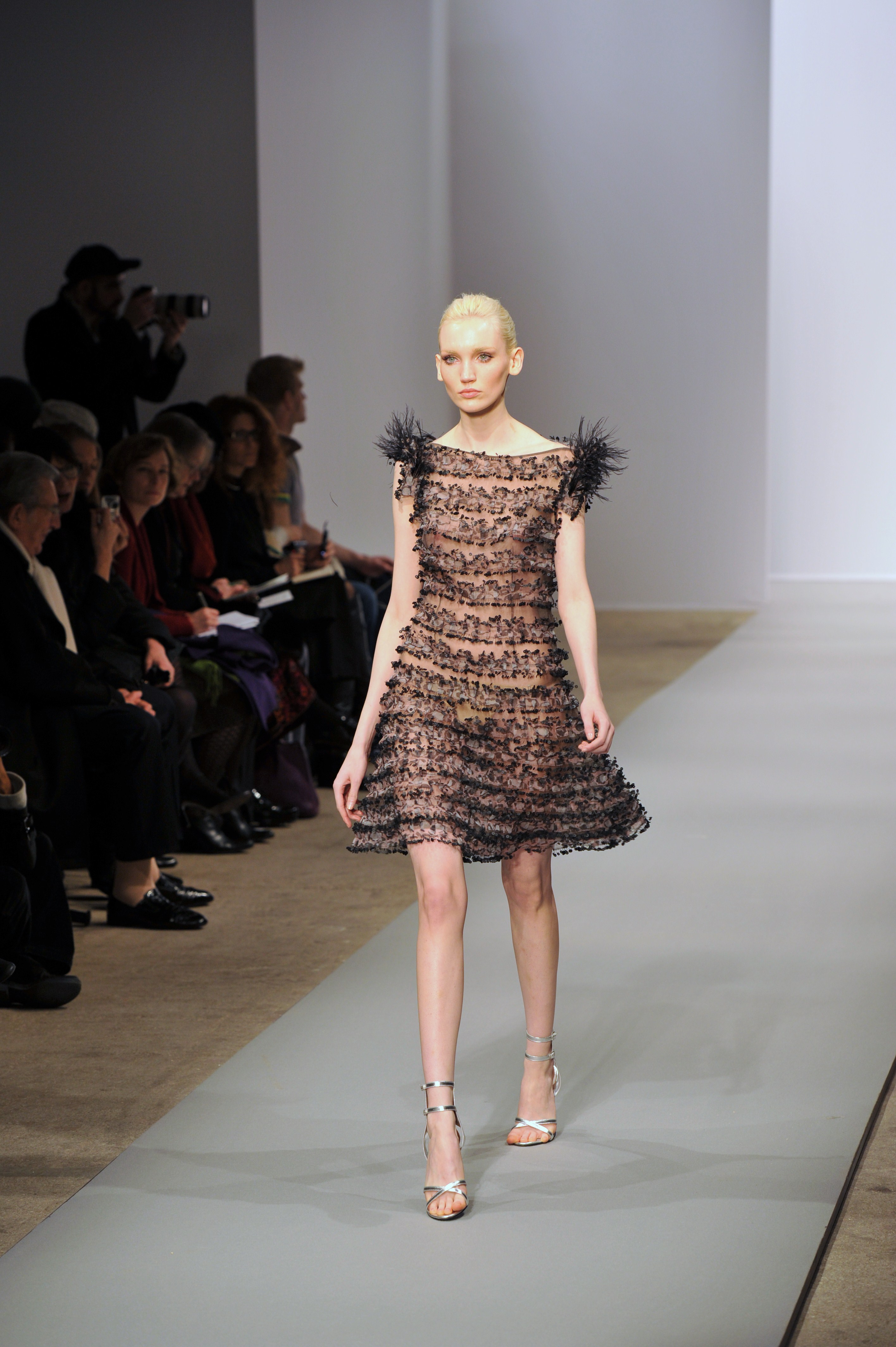 Délicatesse et fragilité sont les maîtres mots d’une collection Printemps Été 2011 exaltant la féminité et inspirée par les œuvres des photographes Heinrich Kühm et Bruce Weber. Le savoir-faire exceptionnel des ateliers Haute-Couture est parfaitement illustré dans une collection pleine de légèreté où le tulle et l’organza ont la part belle.