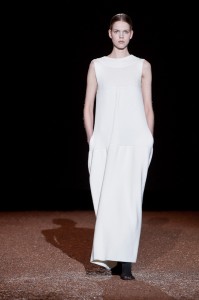 Une approche épurée (un vêtement, une fonction, une couleur), des silhouettes simples où l’ont note des inspiration puisées dans des uniformes.