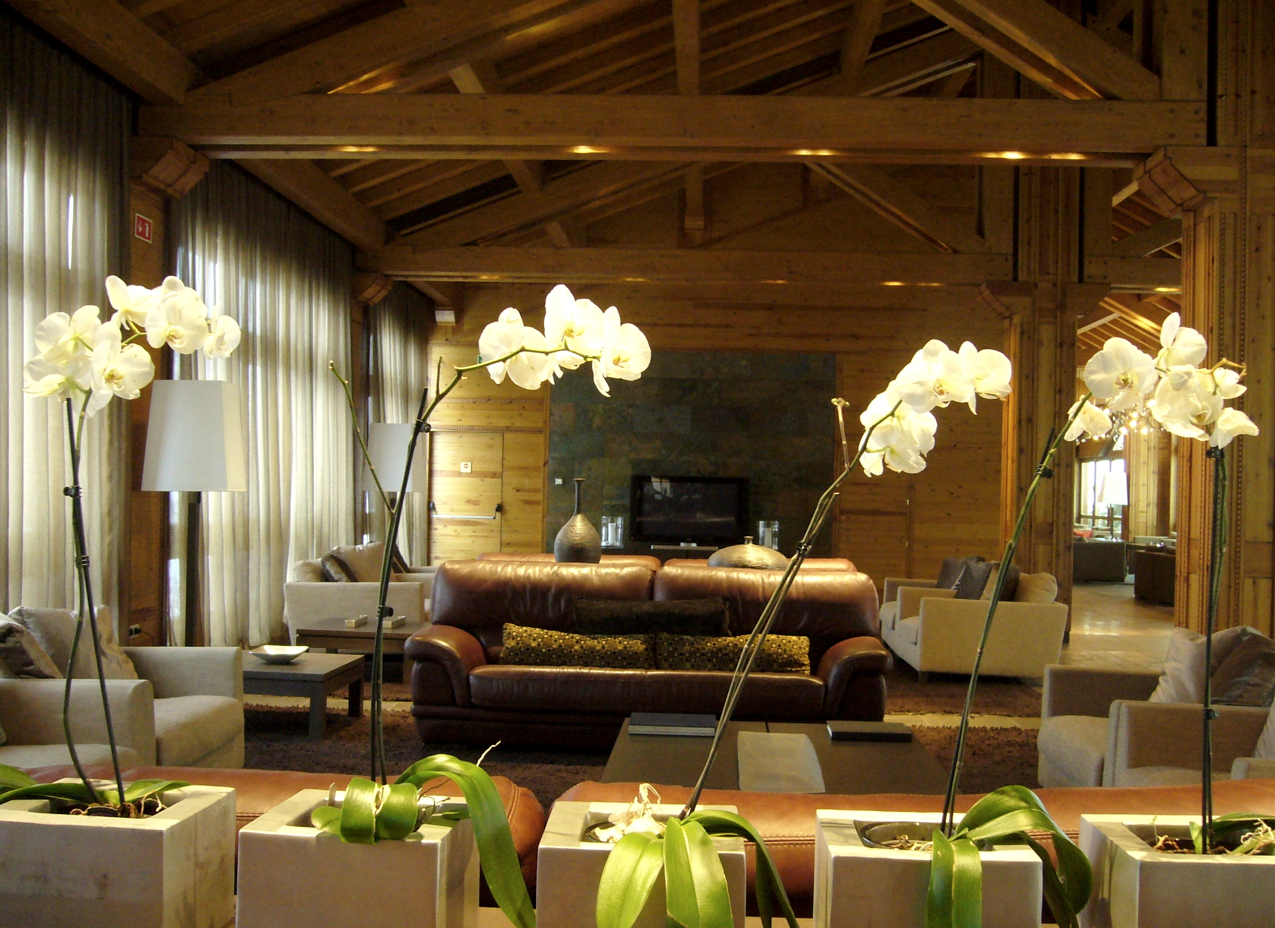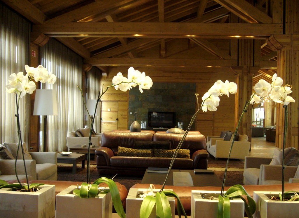 Dès l’arrivée au Sport Hôtel Hermitage, le client baigne dans une atmosphère chaleureuse grâce à l’architecture en bois, aux lumières tamisées et aux orchidées blanches illuminant le lobby. Cette sensation de bien-être immédiat est confortée par les couleurs chaudes des suites de l’hôtel, avec leurs nuances beige et chocolat. Et pour rester connectés si besoin est, des ordinateurs sont mis à disposition des clients pour un retour en douceur à la réalité.