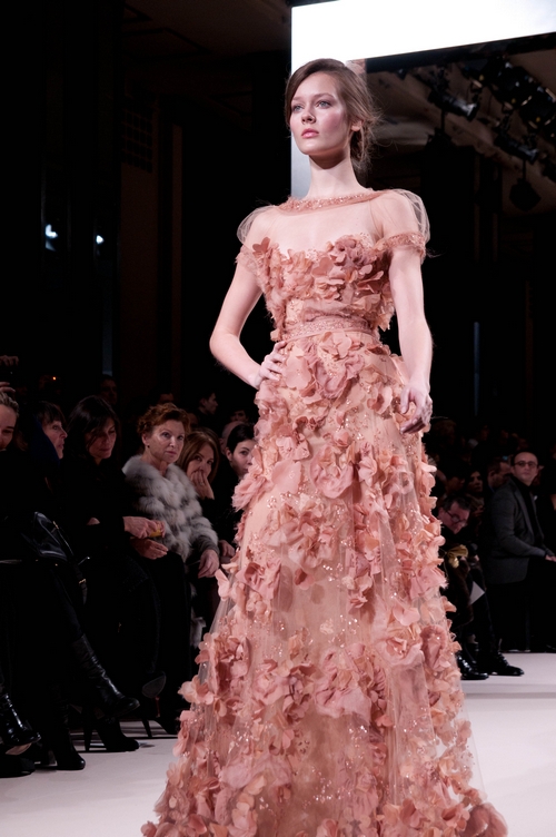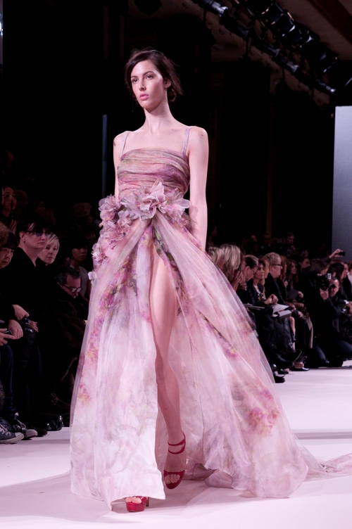 A couper le souffle, M. Saab! Des robes de princesse dans des tons de fleurs sauvages se sont appropriées le podium avec détermination pour cette présentation de la collection été 2011 chez Elie Saab. Il n’est pas étranger au glamour et il y a fort à parier que certaines de ces robes se retrouveront sur les tapis rouges avant que vous ayez fini de lire cet article.