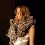 Iris van Herpen, dont le talent n’est plus a démontré et qui a déjà enchanté Vauxhall Fashion Scout en février dernier avant de gagner le Dutch Fashion Award en fin 2010, présentait sa collection pour la première fois à Paris, en off de la couture. Ceux qui étaient présents ne s’étaient pas laissés tenter par les sirènes d’une couture plus classique, car il faut bien l’avouer, il s’agit ici de mode expérimentale et quoi qu’on en dise, d’une collection qui n’aurait pas pris toute la place qu’elle méritait si elle avait été montrée en prêt-à-porter.