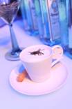 Combine gin, tea infused simple syrup and lemon juice in a shaker over ice, shake vigorously. Double strain into a tea cup. Beat espuma mix until thick and foamy, spoon into tea cup, on top of Sapphire mixture. Put a pinch of tea leaves in center, garnish with a stick of orange bitters rock candy on the side of the tea saucer.