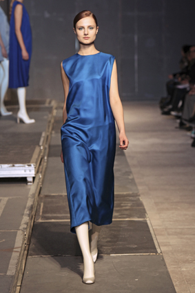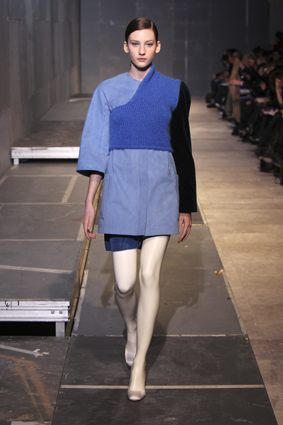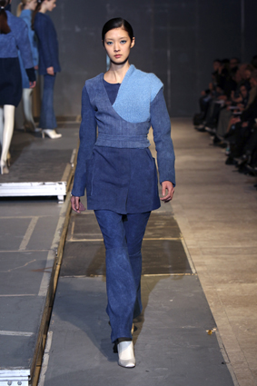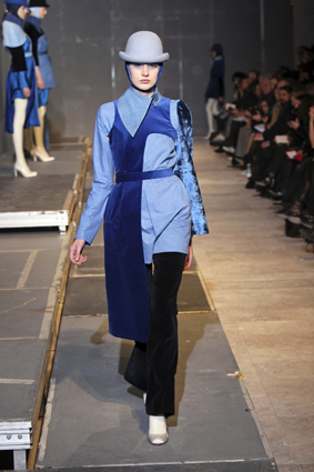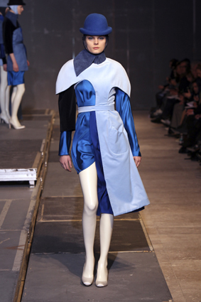 Cette collection automne hiver 2011-2012 riche en asymétries est un assemblage de textures, de pièces vestimentaires et de bleu qui retracent l’histoire de cette couleur à travers les âges. Chaque tissu absorbant de manière différente et singulière le même pigment, Nana Aganovich et Brooke Taylor nous proposent alors un intéressant dialogue visuel entre le tissu et la couleur à travers de véritables essais chromatiques sur une multitude de tissus différents.