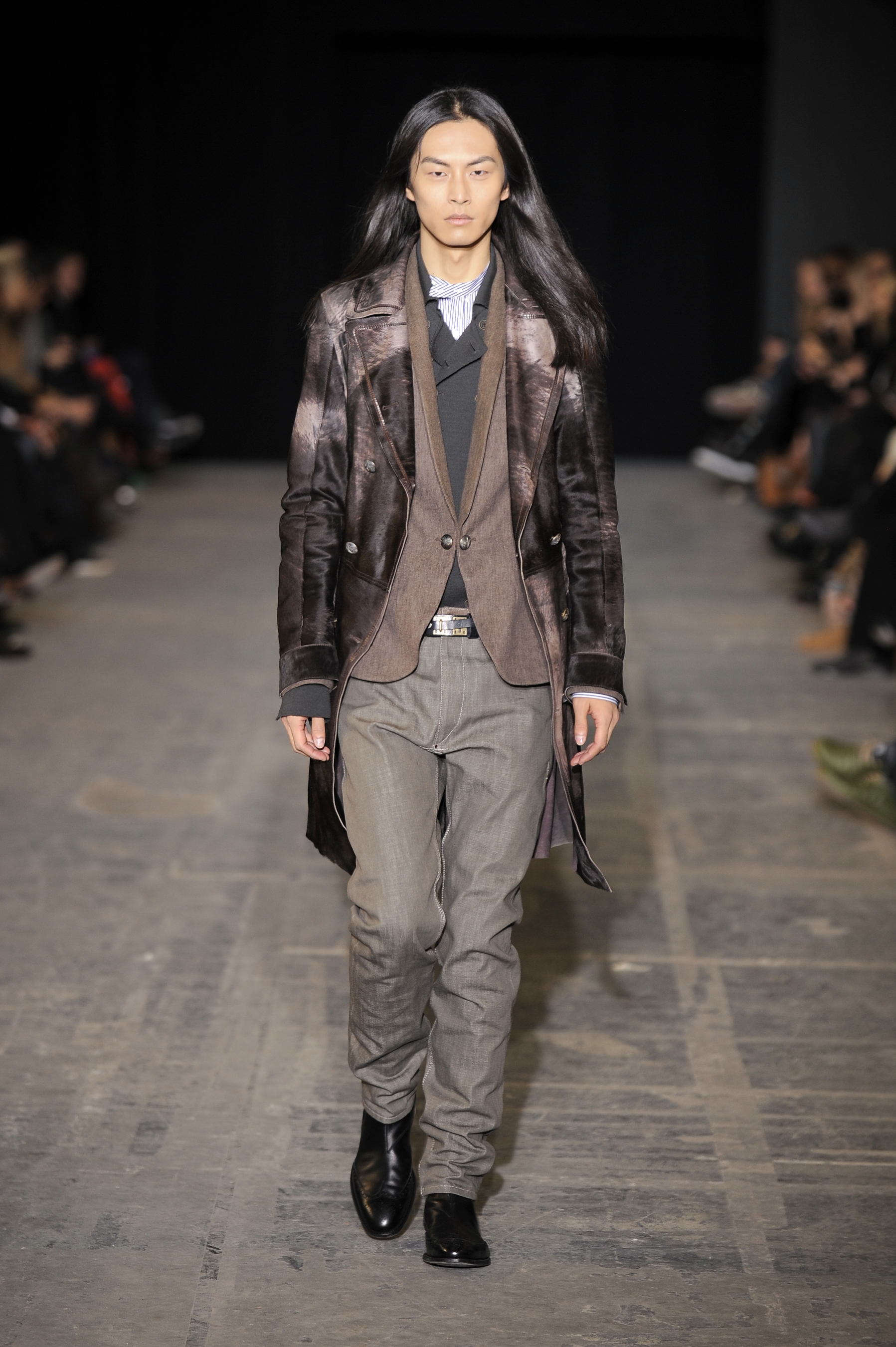 Le cuir et le denim, très présents, soulignent la dureté naturelle de la collection.