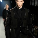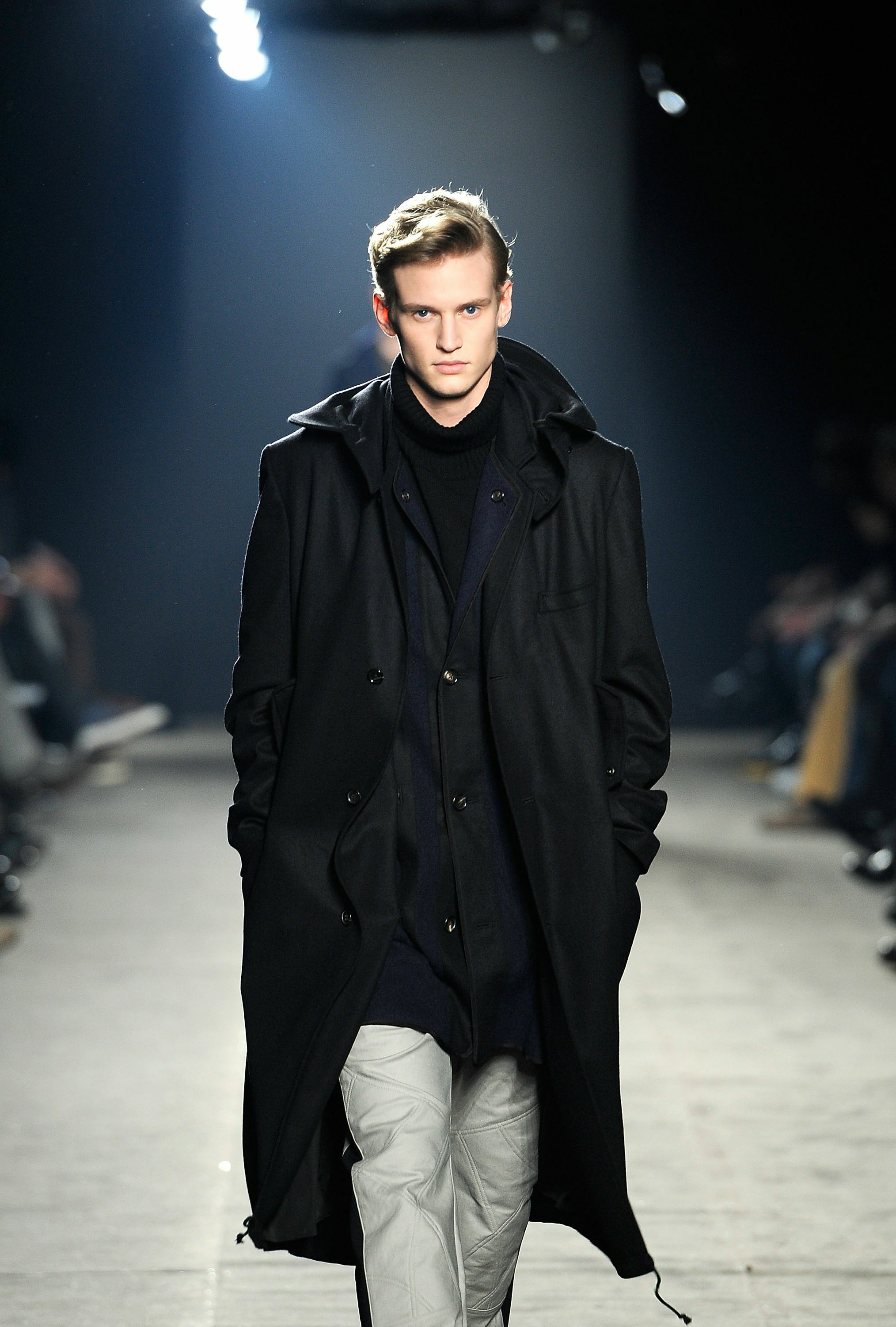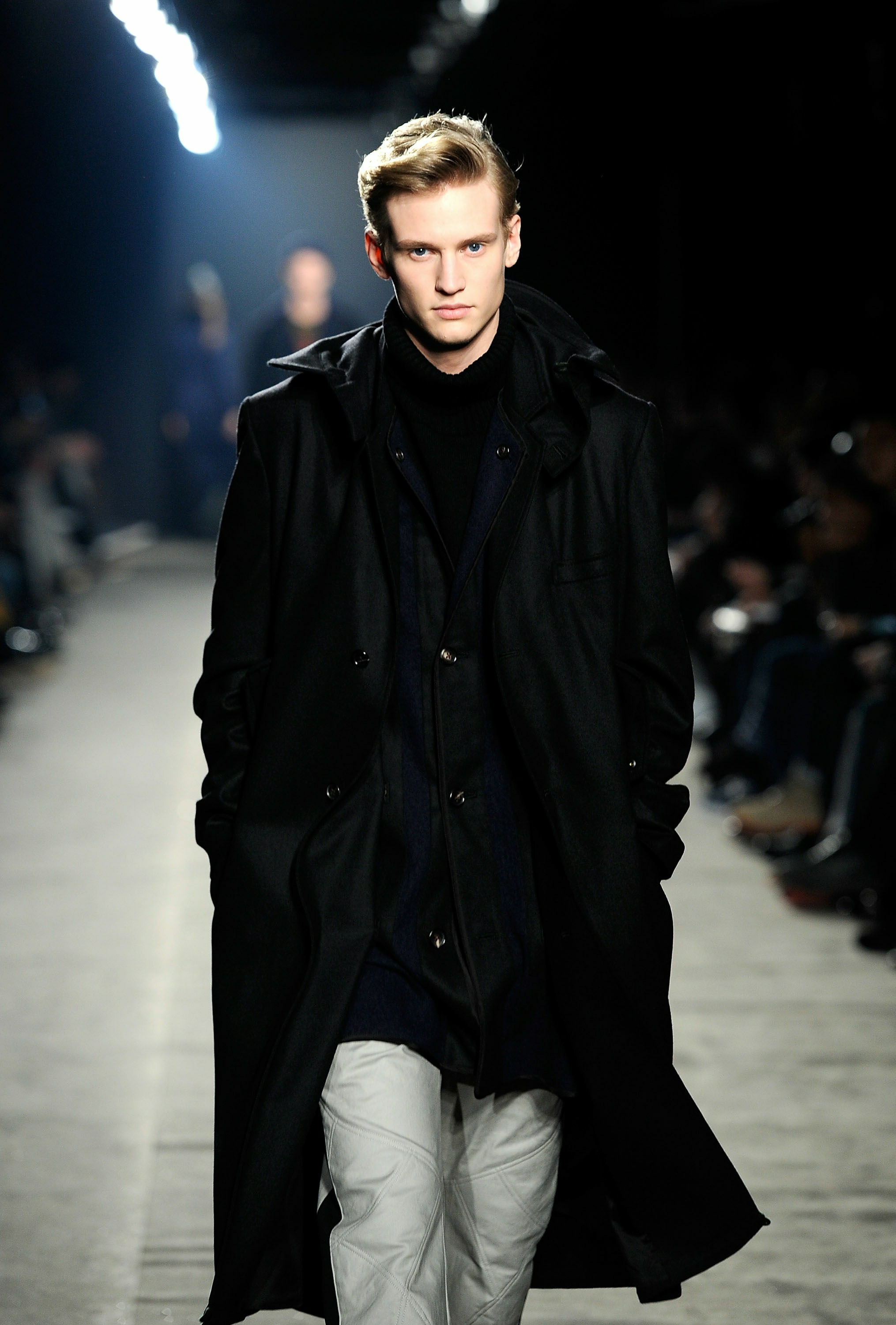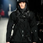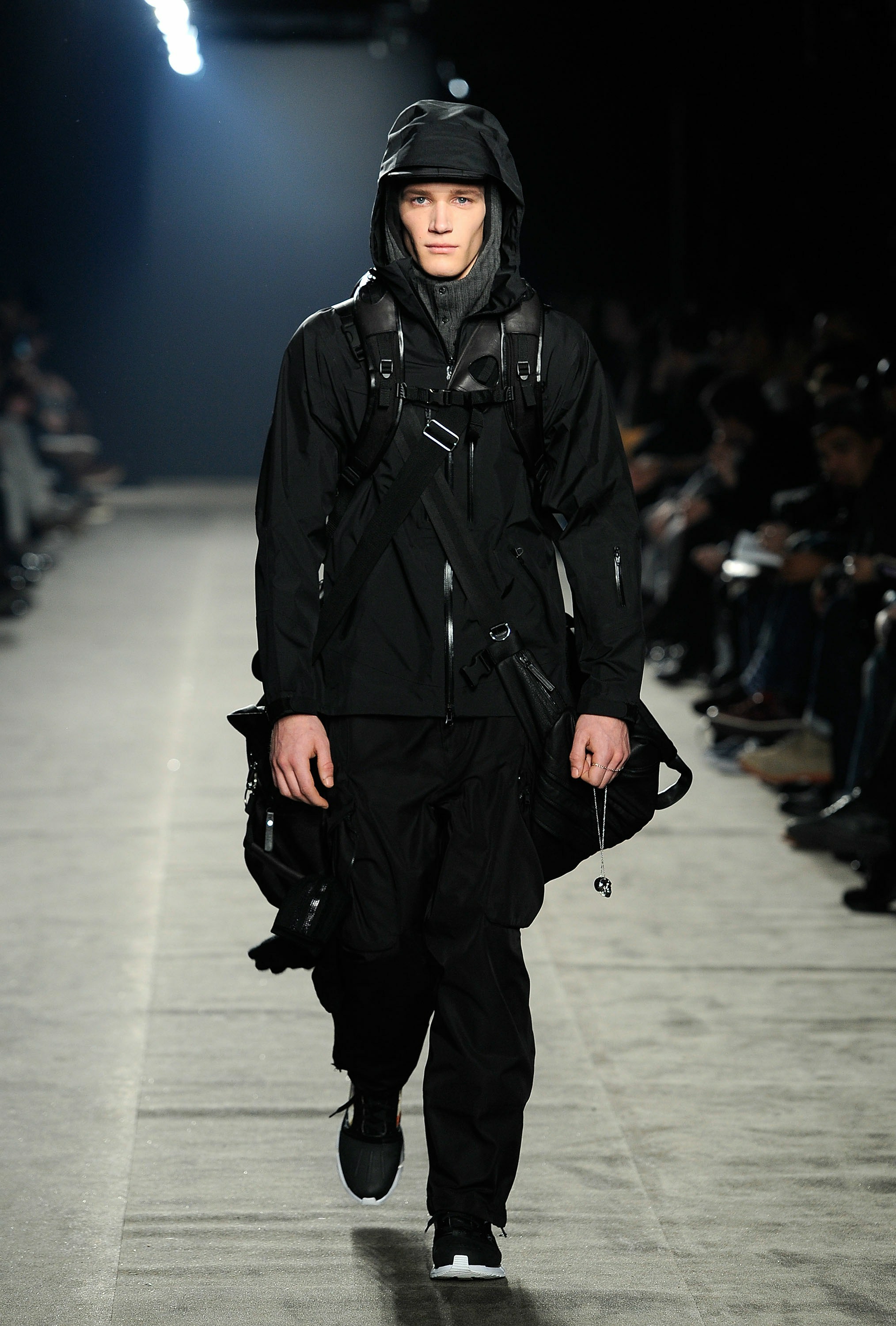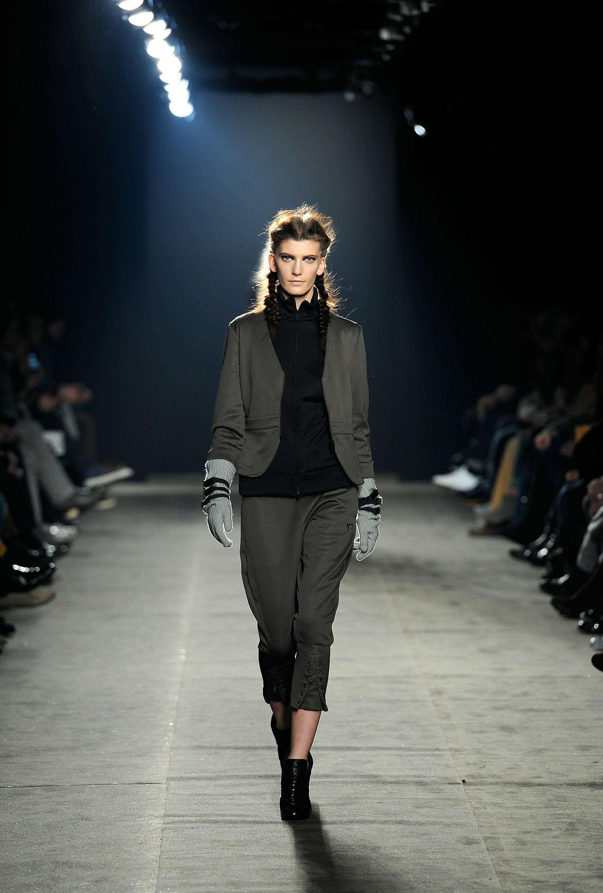 Y-3 a présenté deux nouveaux tissus : » Cool Max Wool » , une laine respirante, avec un système de refroidissement par évaporation, et » Diaplex, » chevron en laine lié à Goretex qui se moule au corps, comme une seconde peau.