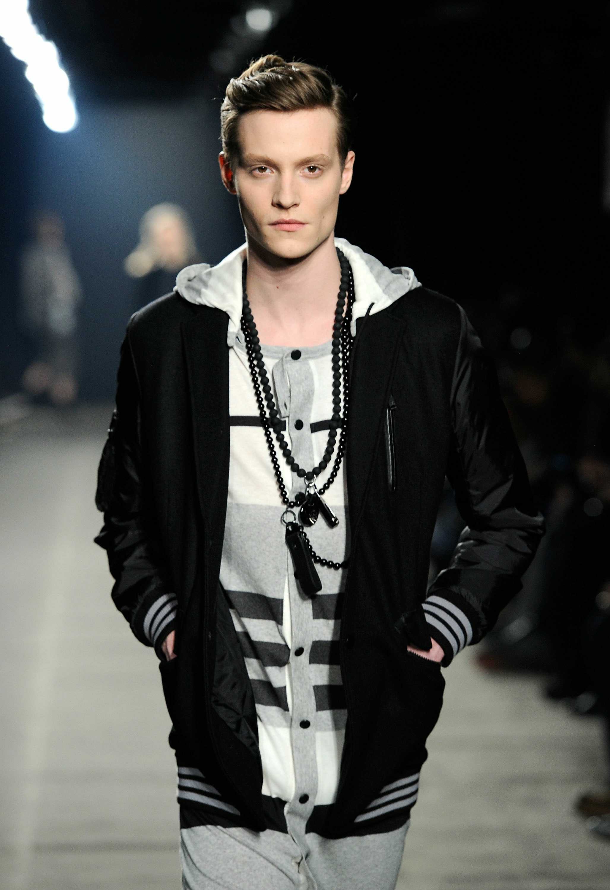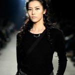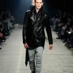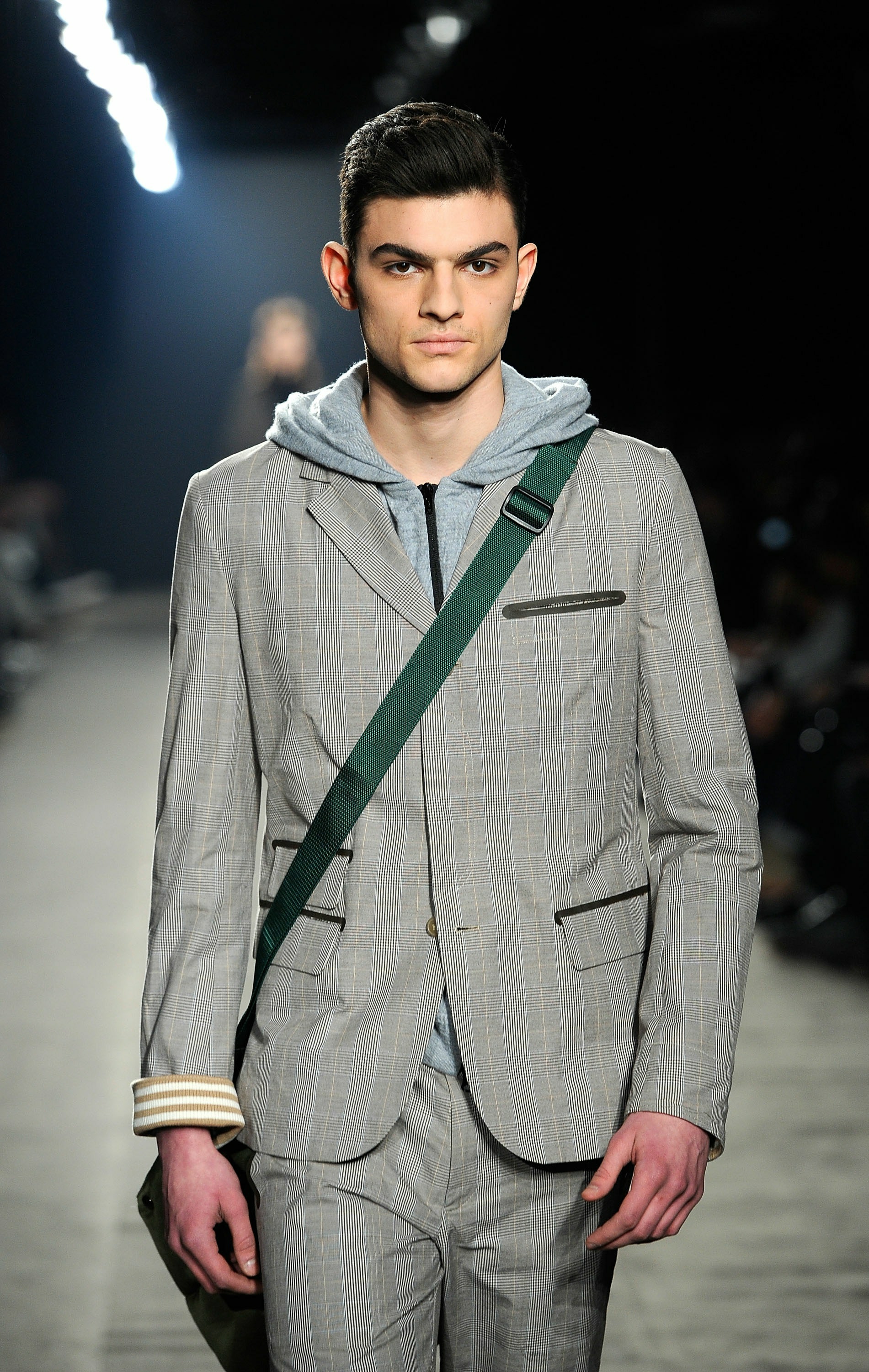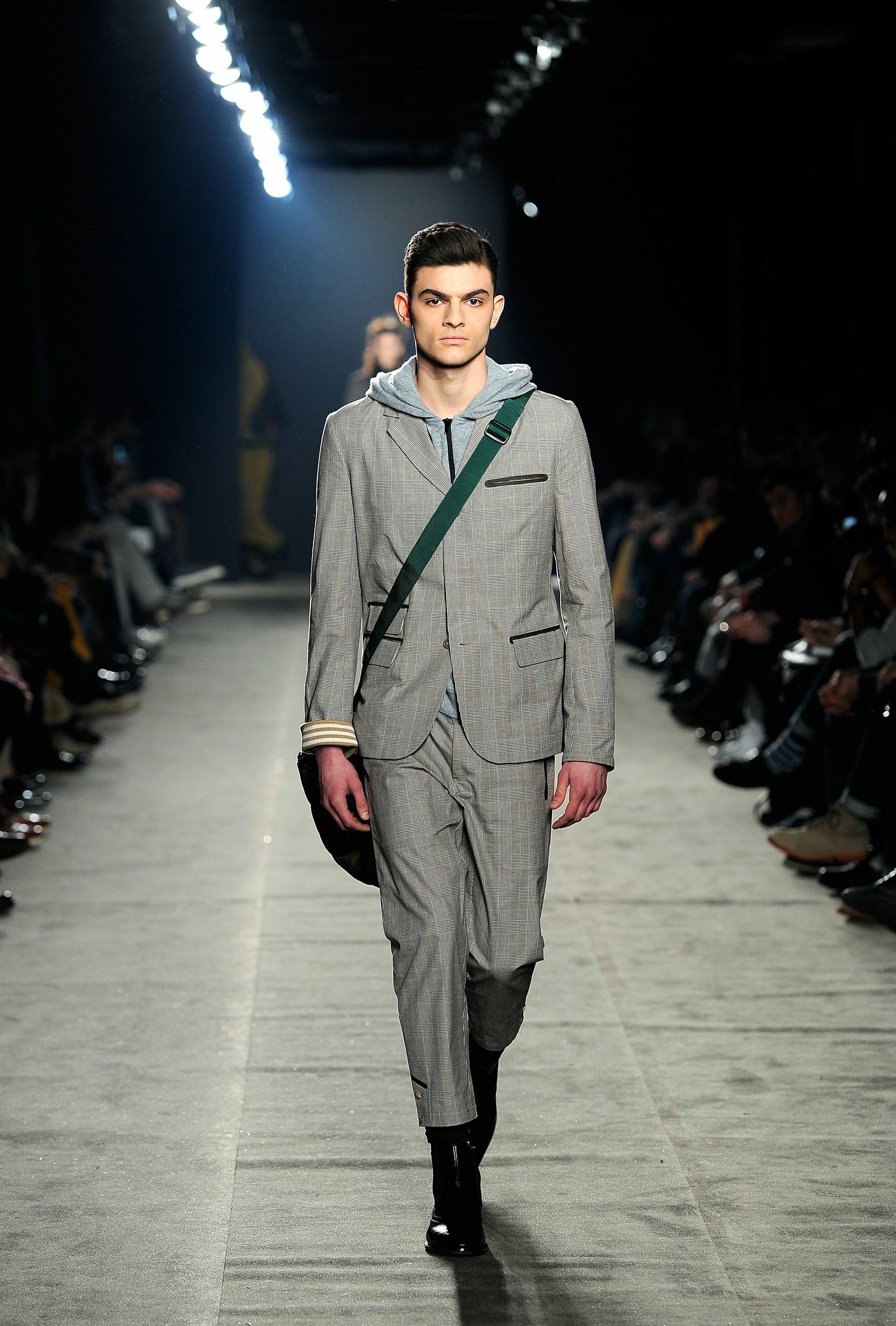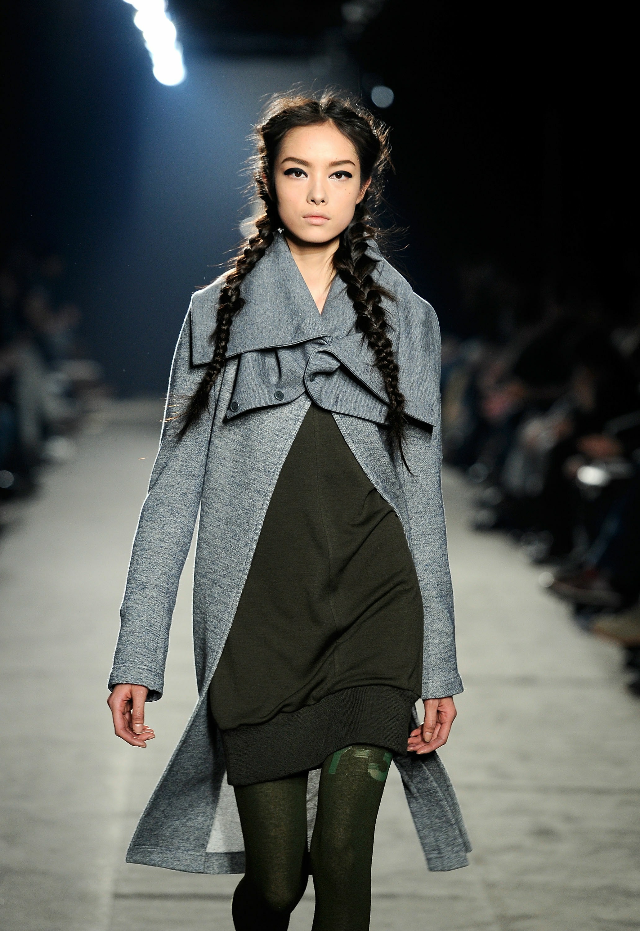 Y-3 a présenté deux nouveaux tissus : » Cool Max Wool » , une laine respirante, avec un système de refroidissement par évaporation, et » Diaplex, » chevron en laine lié à Goretex qui se moule au corps, comme une seconde peau.