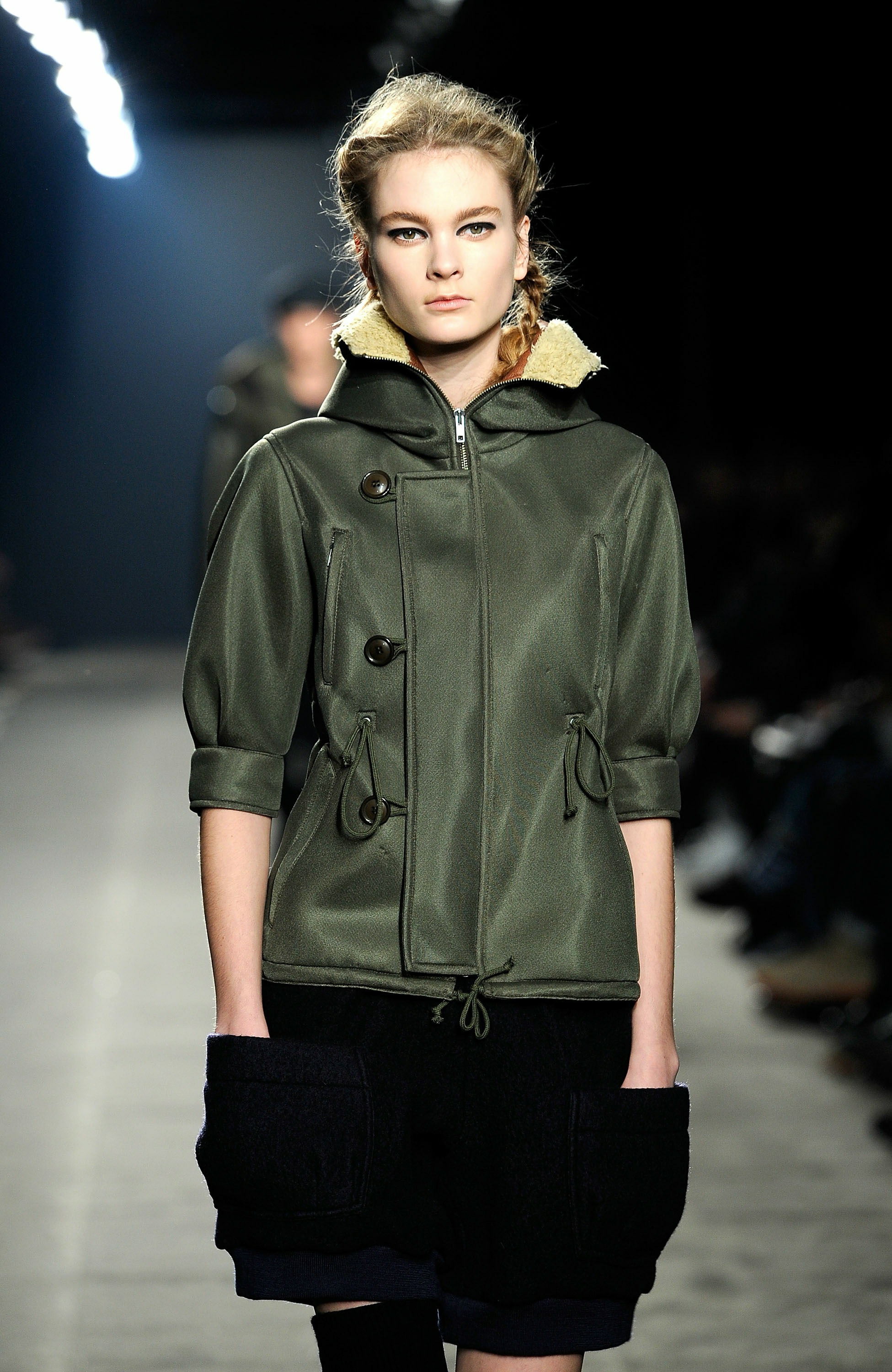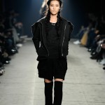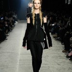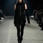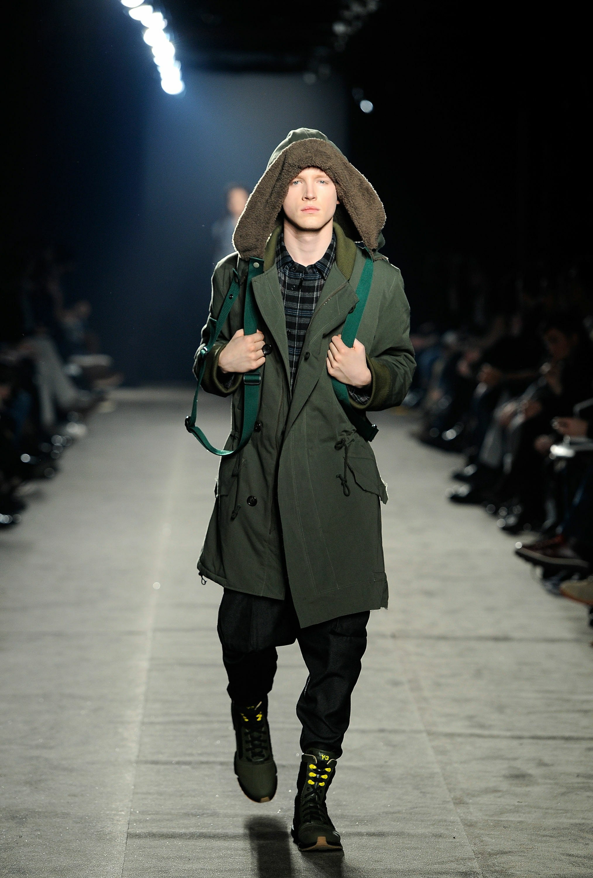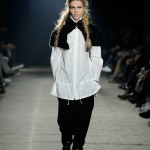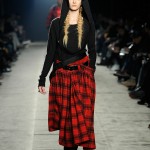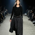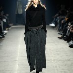 En resumé, le spectacle était sur le voyage et non pas sur la destination, les vêtements ont été conçus dans cet esprit. la collection femme a joué sur les volumes et le confort; avec des ponchos à capuche, des jupes plissées avec ourlets et de grands pantalons en laine évasés, le tout dans des tons noirs, verts olives, et rouges. Y-3 pour les hommes, a suivi une trajectoire similaire, puisant son inspiration à travers « l’armée » avec des parkas, des combinaisons à rayures, des vestes de travail matelassées en daim et laine, de coton.