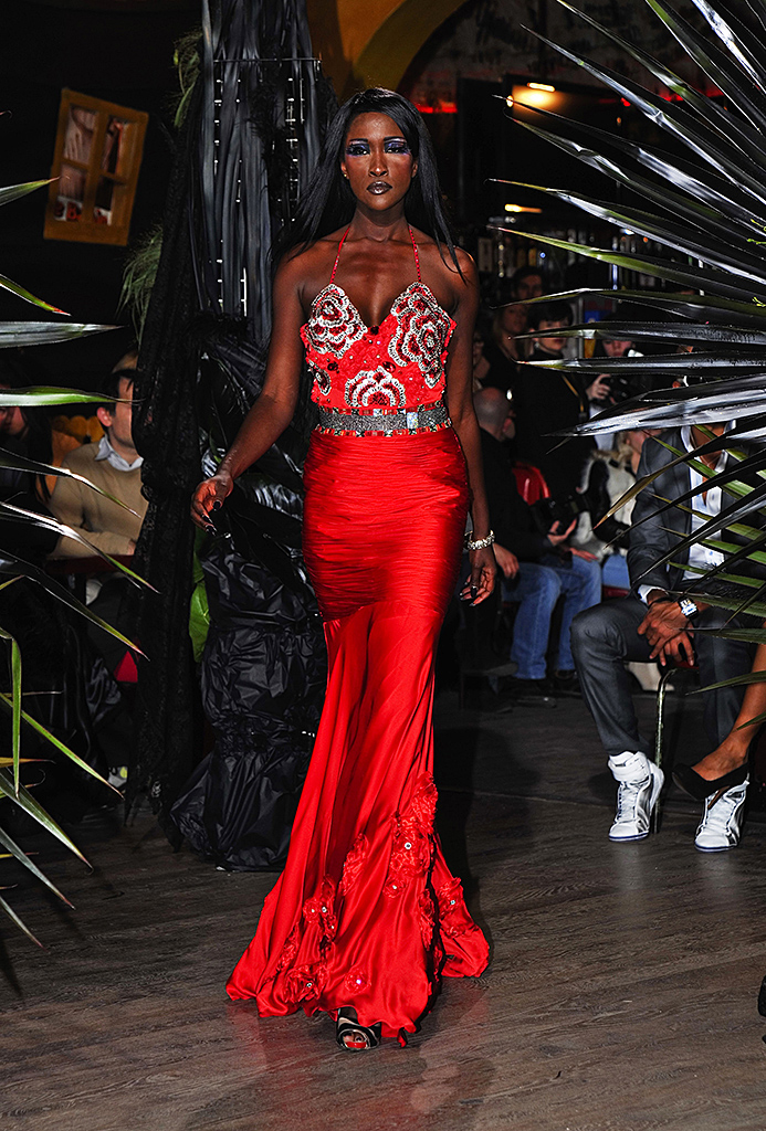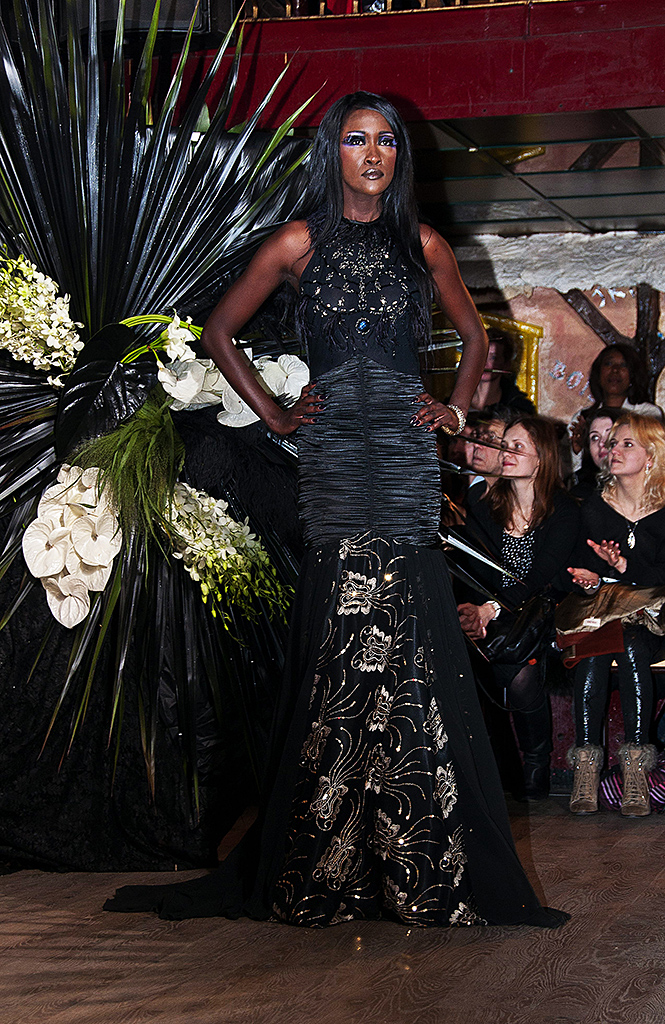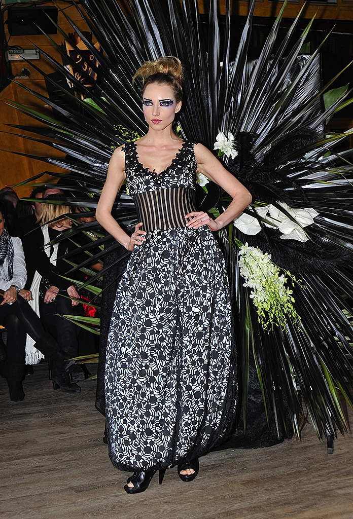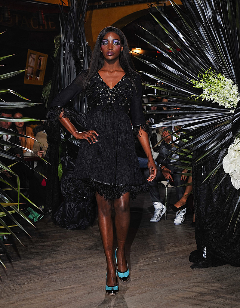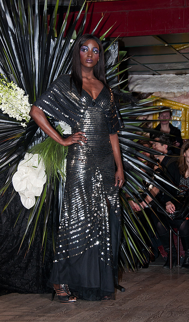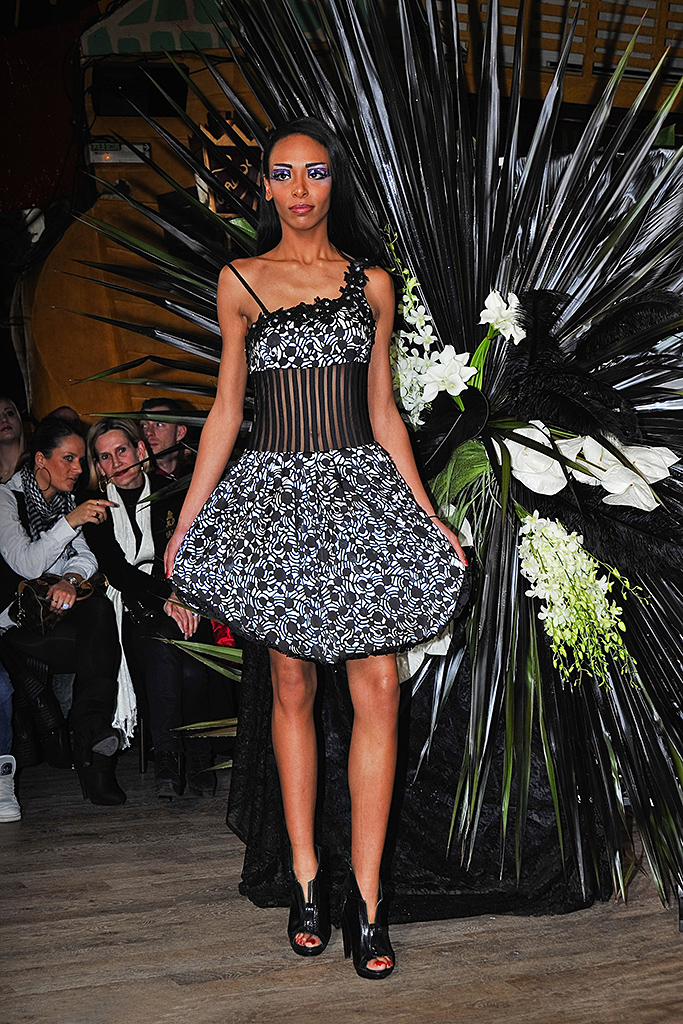 Christophe Guillarmé is seduced this season with a black & white spirit clearly timeless for winter 2011-2012 focusing on a leading dancer escape from Bolshoï. A romantic style teinted with rock inspired from Russian ballets and vintage 40’s and a tribute to Agnes Letestu. In search for the absolute, the designer takes his inspiration from dance universe: In the exquisite black lace gowns there is the same fierceness requested from a dancer. An amazing amount of hours is needed on each style to recover it with satin tapes or sequined bands to emphasize women’s curves. Fuchsia pink and lipstick red touches are lighting this colour range mixing taupe, pearl grey and a strong black accent in various aspects: from seethrow mesh covered with beading and ostrich feathers to « ombré » angora knit. Combinations of gathered or braided jersey dresses and lasercut exclusive lace are creating for Christophe ‘s muse a strong feeling from Darren Aronofsky movie « Black Swan ».