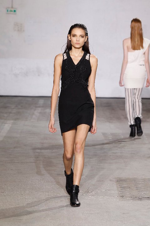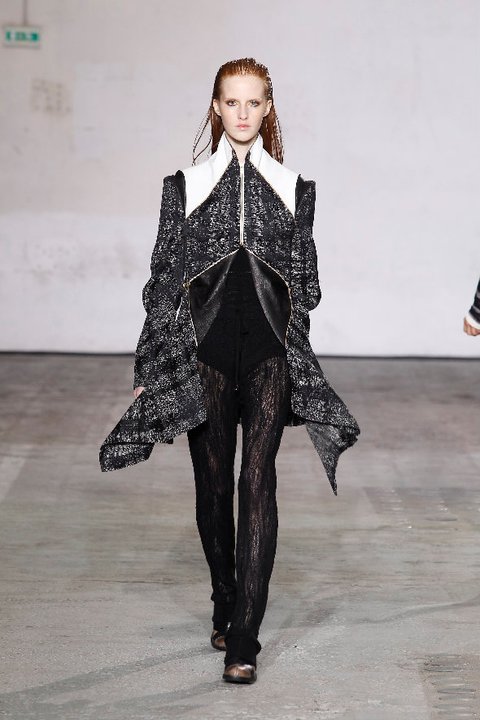 Visiblement inspiré par l’univers marin, Luis Buchinho nous propose pour l’Automne Hiver 2011-2012 une collection plus casual qu’à l’habitude mais néanmoins empreinte de sophistication. La femme Luis Buchinho aime les matières naturelles et le fait savoir sans ostentation. Le cheveu est lissé, plaqué en arrière et légèrement humide, le maquillage est ultra-épuré. Seule une ombre dorée vient éclairer le regard, comme une manière de déroger à la règle.