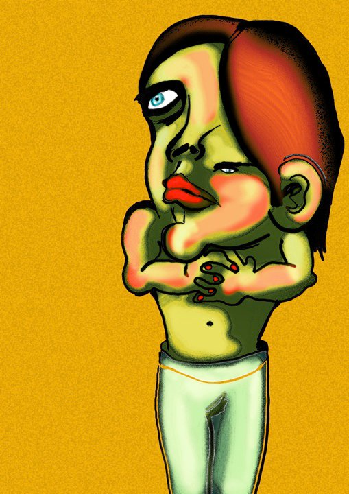 AG / YEP. L’être humain est ma principale inspiration mais surtout ce qu’il peut se cacher à l’intérieur. Ses peurs, son imagination, sa nostalgie. Ce sont les thématiques que j’aborde dans mon boulot. J’aime aussi, juste pour le fun, reprendre des clichés : … dessiner ce qui pourrait représenter pour moi le « bad-boy », « la pute », « le geek », etc… J’aime créer aussi mes propres êtres. Je me marre toute seule à leur faire faire des grimaces, à tortiller leurs corps ou à les colorier en vert, jaune ou bleu.