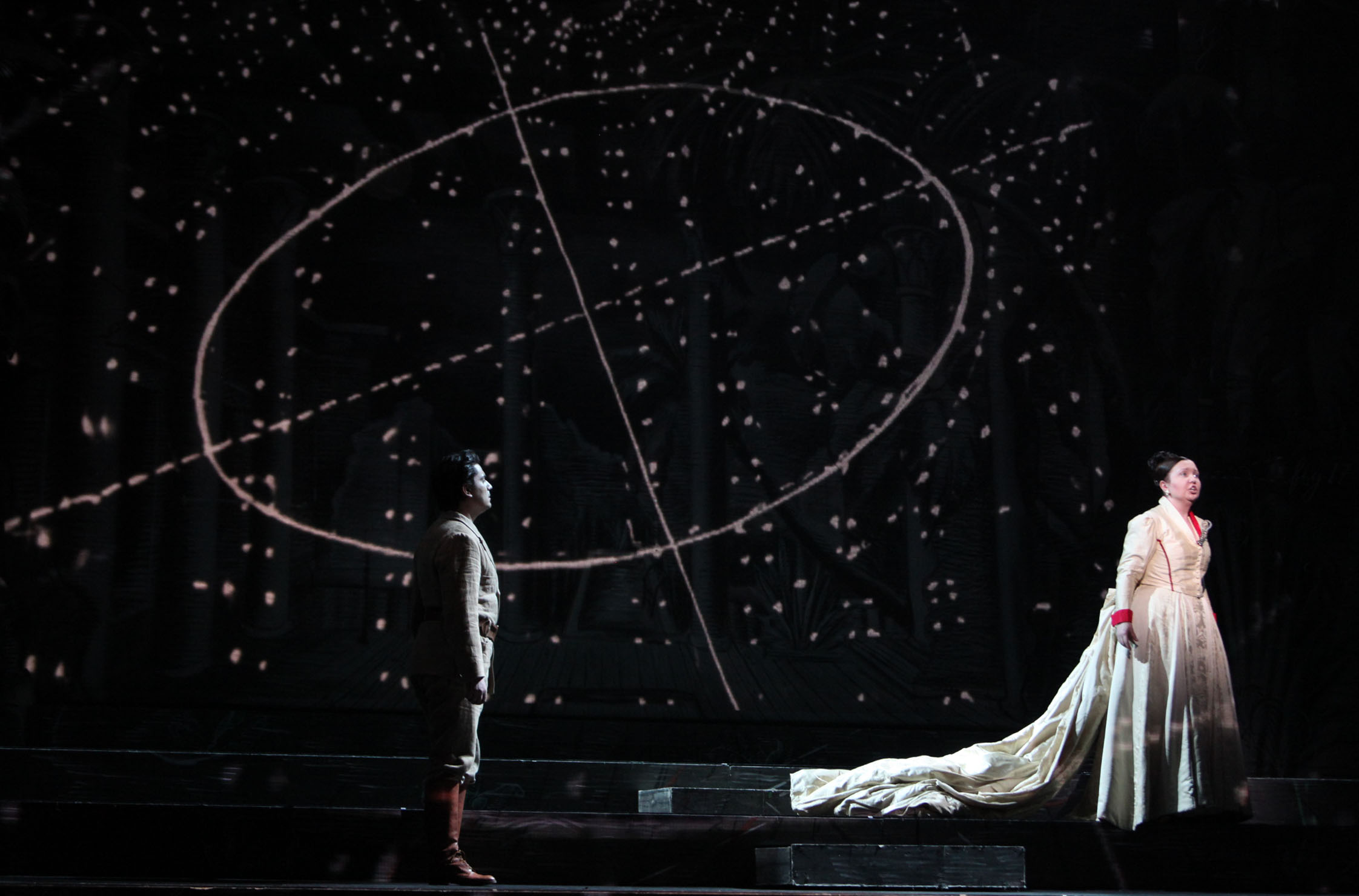 di Greta Goiris ,dall’intelligente gioco di luci di Jennifer Tipton sino alle magistrali e geniali proiezioni video di Catherine Meyburg . Tutto l’armamentario massonico vi compare