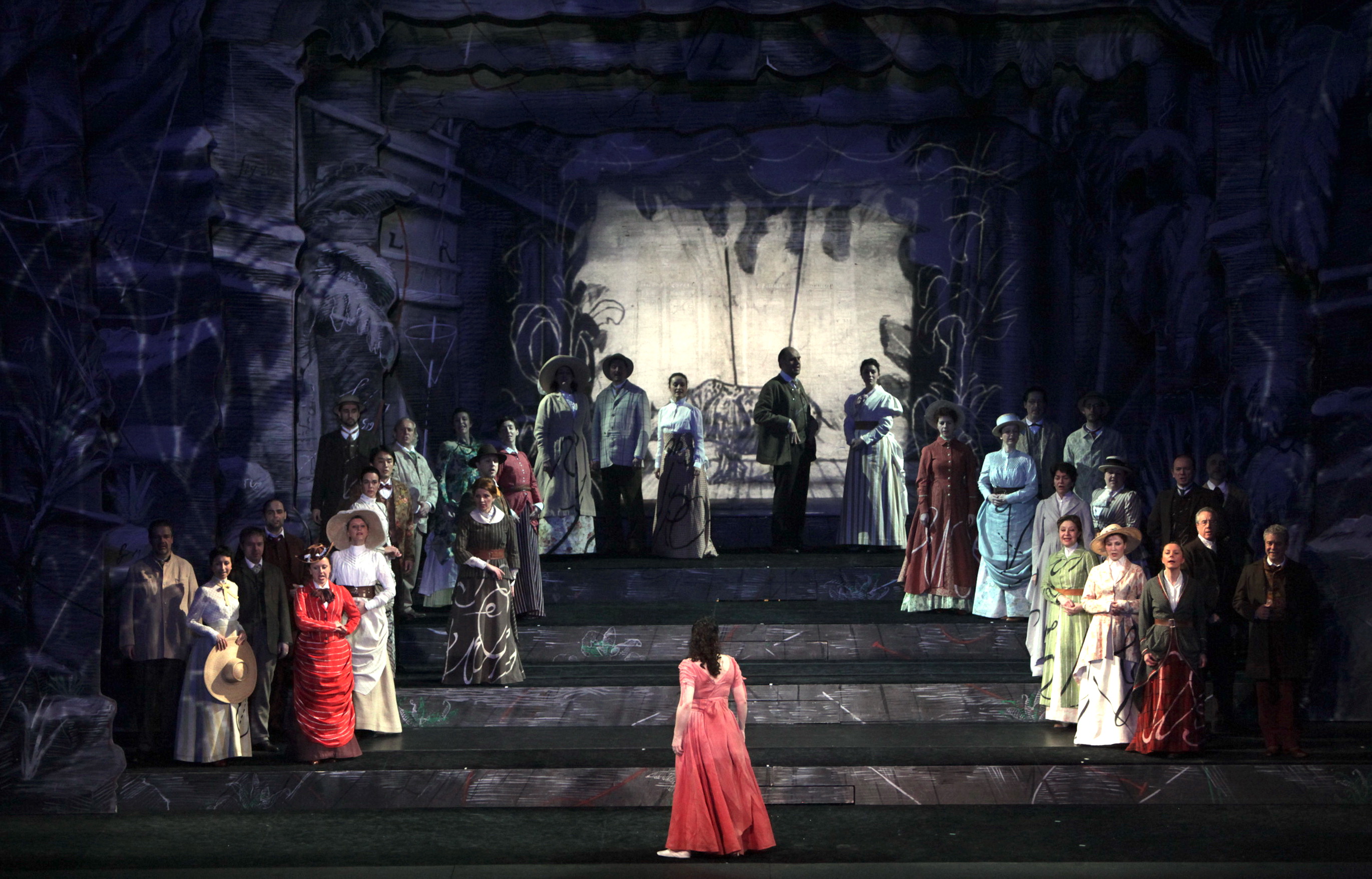 assume una dimensione più corposa ed amplificata, dalle scene di Sabine Theunissen, ai costumi