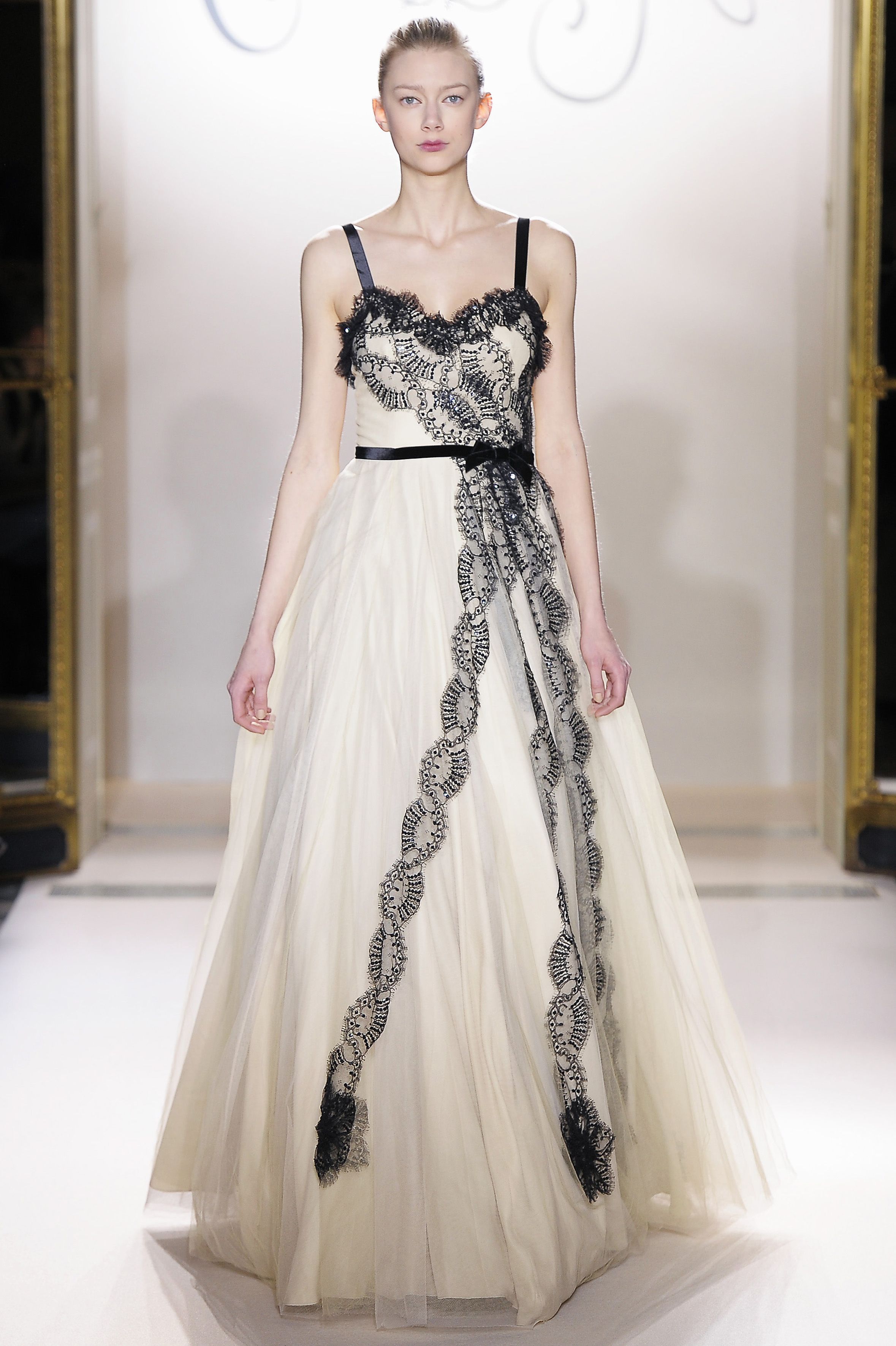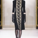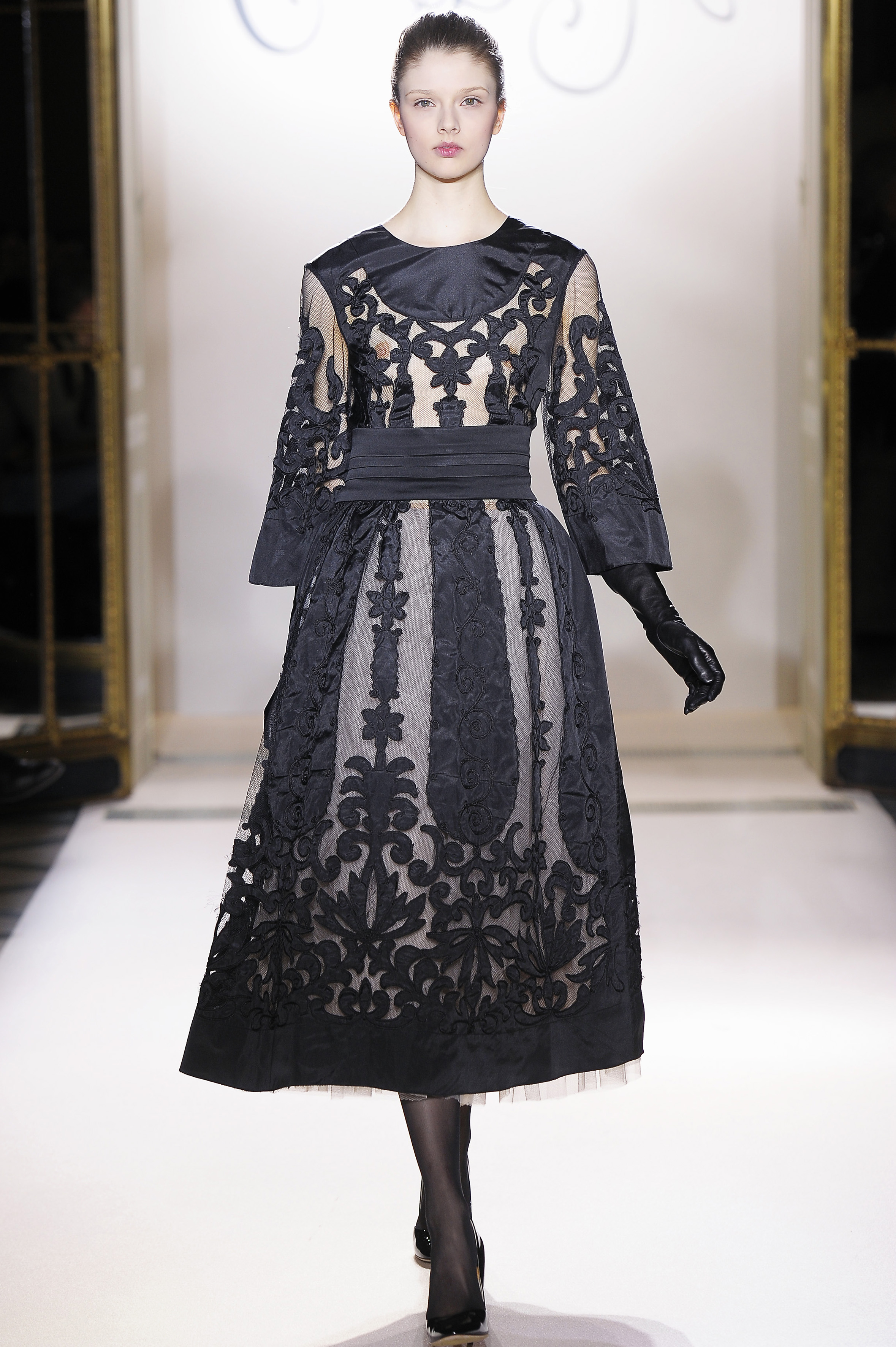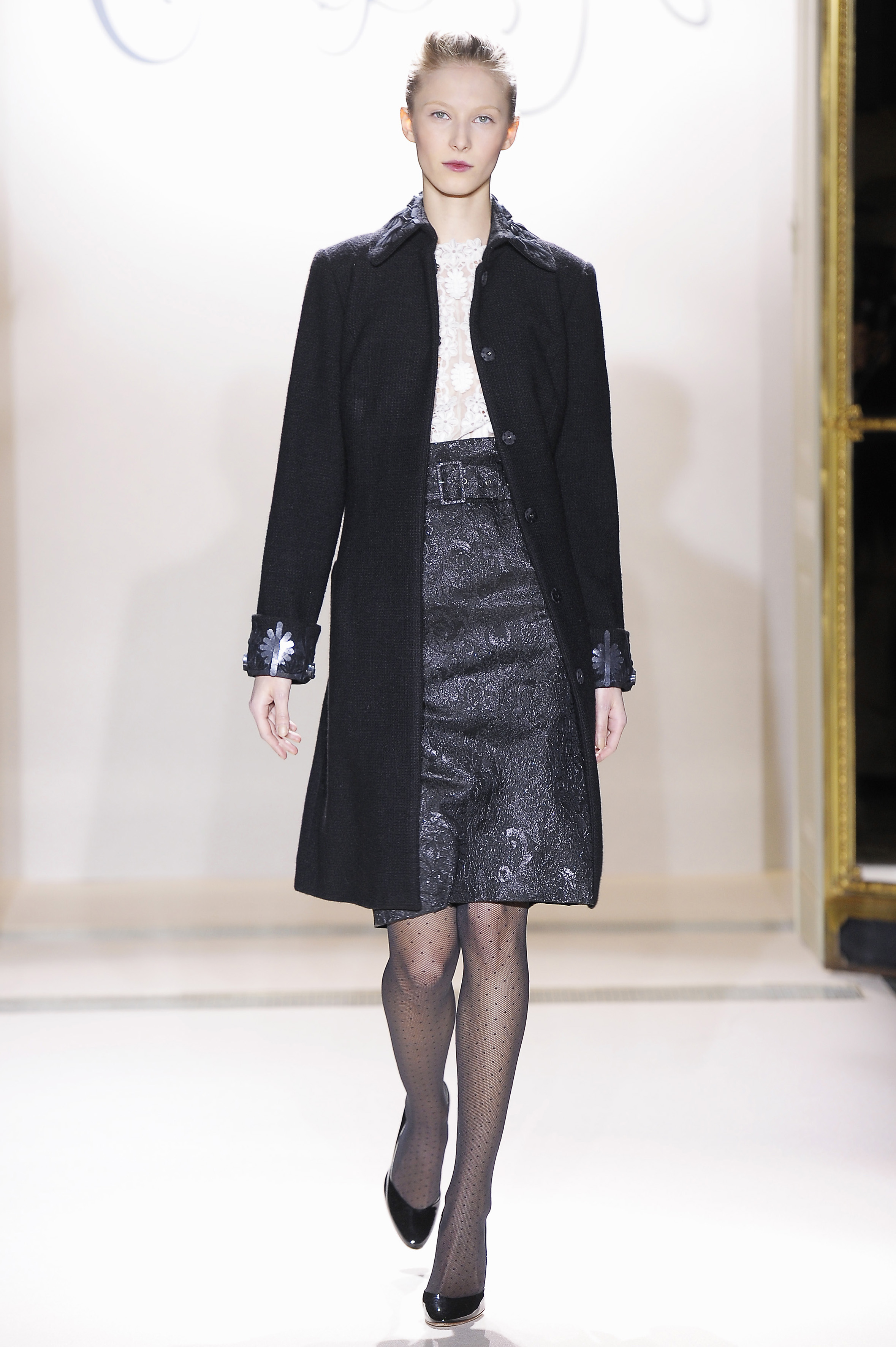 Belle blossom, Italian lace brocade, noir French lace, Venetian wool suiting, Rococo embroidered organza and forest fur – an interfusion of texture and tradition, light and shade.