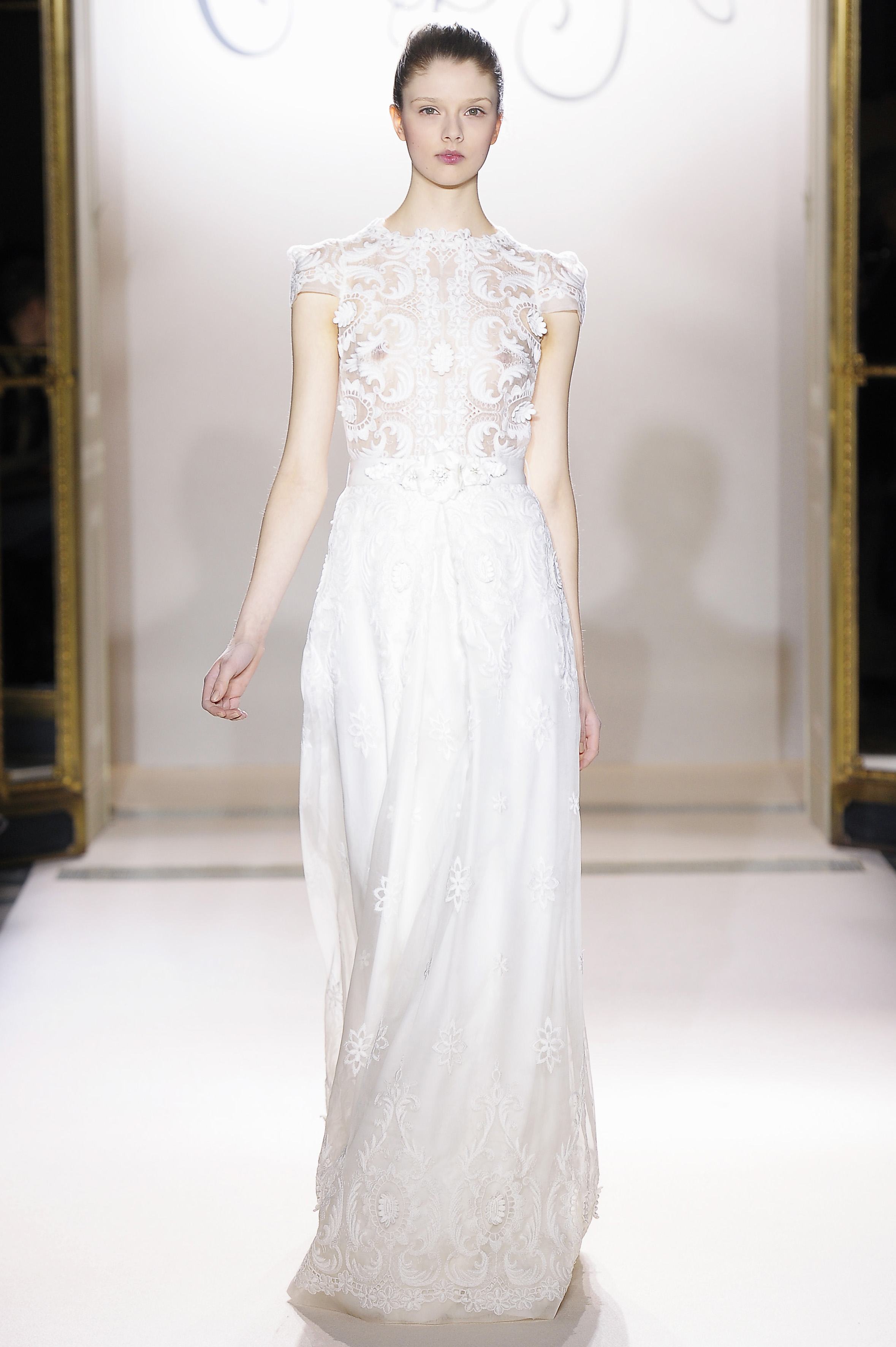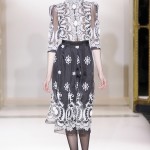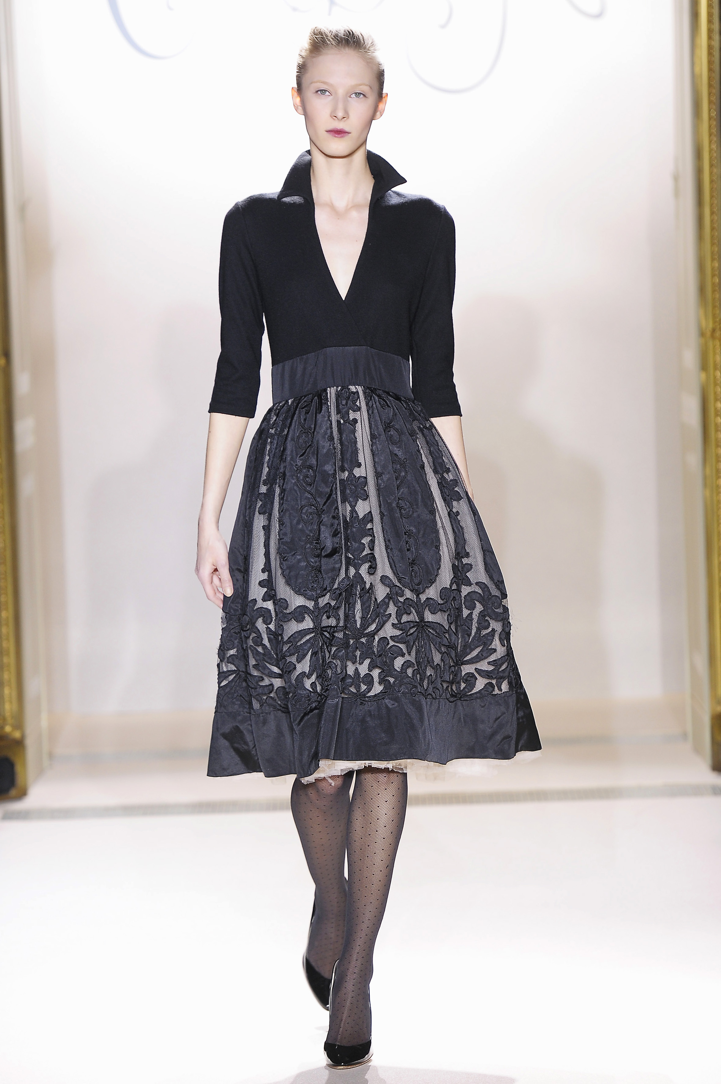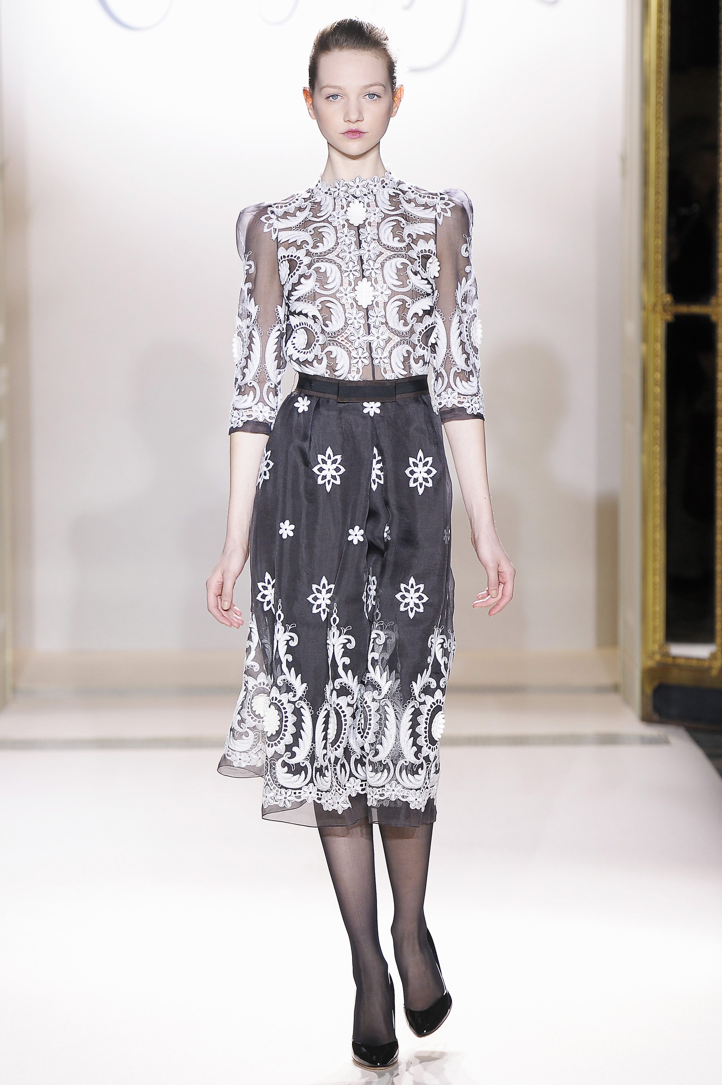 Belle blossom, Italian lace brocade, noir French lace, Venetian wool suiting, Rococo embroidered organza and forest fur – an interfusion of texture and tradition, light and shade.