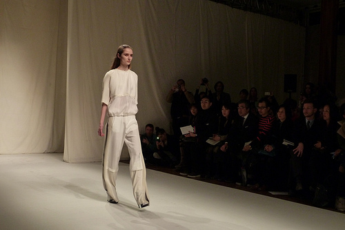 The Commuun garments look, as always, easy and breezy to wear, as if they are as light as air, as if they are almost not there. A little too light for winter-wear perhaps, but the two designers whom I met at their after party at the Fidelity in the 10th, explained to me that they went back to their roots, to the original inspirations for this collection (which differs so much from last winter’s collection that had a more African desert theme).