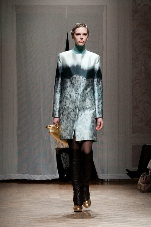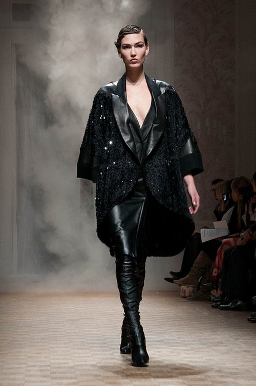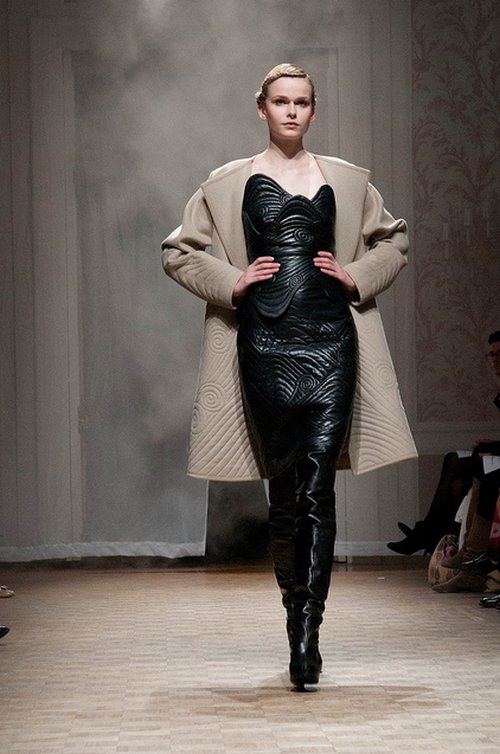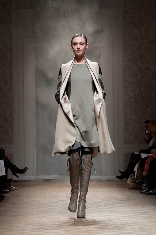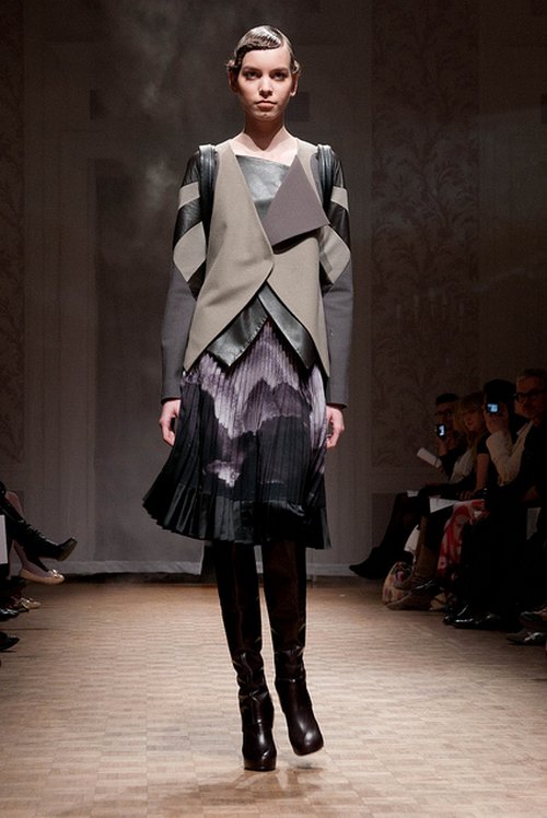 Lie Sang Bong est contemplatif. Après une décennie de créations exhubérantes, il se retire dans les paysages montagneux de sa Corée natale pour une retraite spirituelle et vestimentaire. Epurée, sa collection automne-hiver 2011-12 donne le ton par sa scénographie magifique, projetée sur les toiles qui entourent l’assistance.