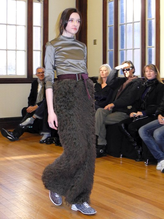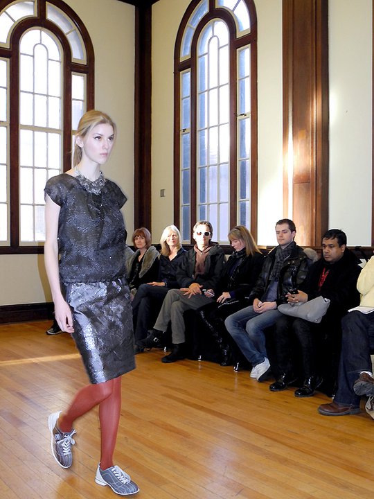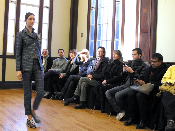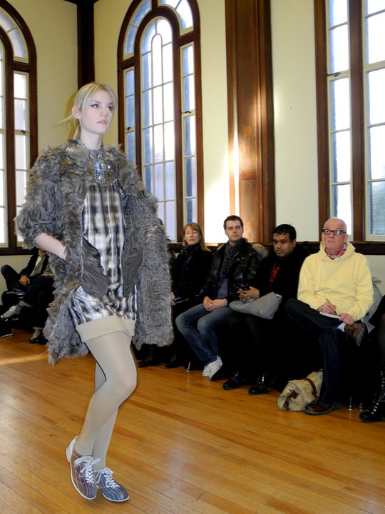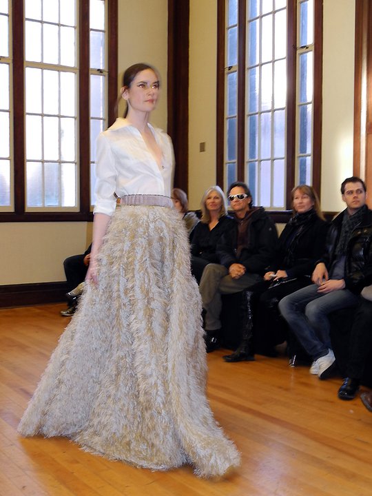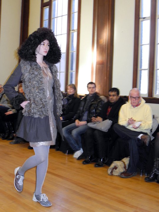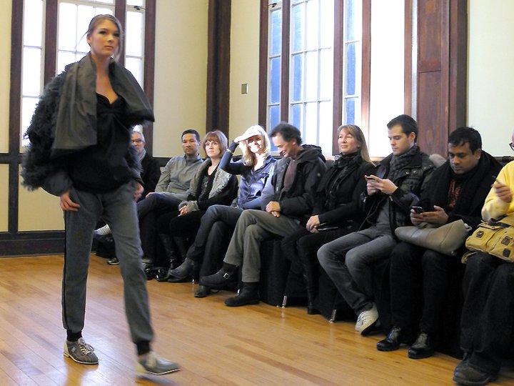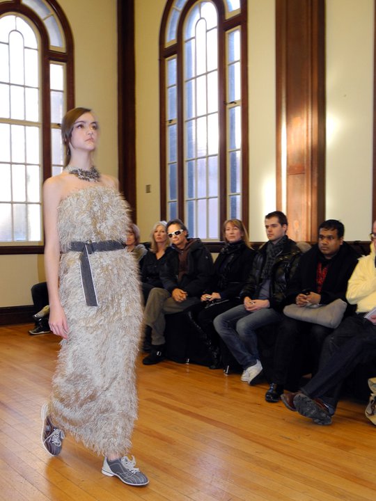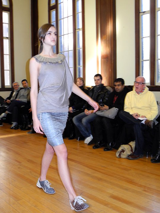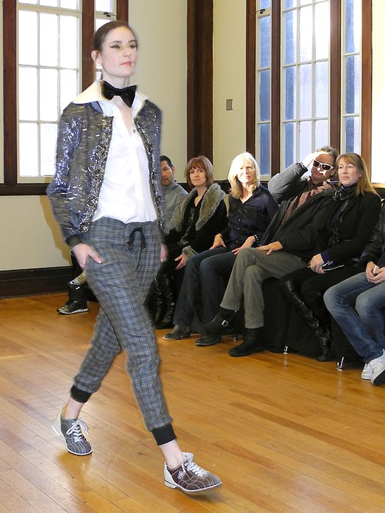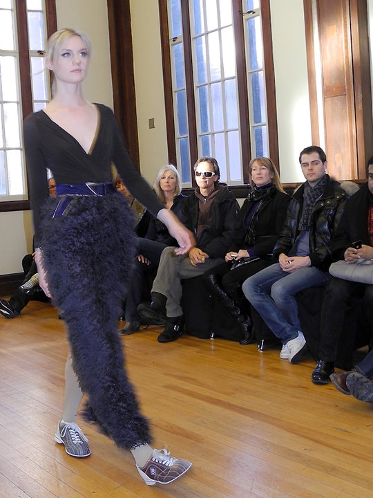 The FW11 collection featured mainly metallic grey pieces accessorized in hosiery and numbered bowling shoes from the local Ballroom Bowlerama. The bowling shoes paired with the young, sporty, ponytailed models, created a very cool casual feel to the collection. The black on grey metallic prints were beautiful, as was the window-pane suit and check dress. Hardy’s low-cut blouses draped over the models with a welcomed dose of sexiness. The lightweight silk feather dresses, feather pencil skirts, and feather hoodies were simply out of this world. Surprised to see him shy on the fur and shearling and sadly, he left us poor boys out in the cold this season. Hardy’s take on the ballet/dance fashion trend has taken a refreshing direction. The result is an innovative, wearable, and nowhere near as formal or costume-like collection as some of his contemporaries. Something that will prove to work in his favour. For fashion show photos, please visit the It’s All Style To Me Facebook Page. For more information on Paul Hardy, please visit www.paulhardydesign.com.