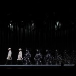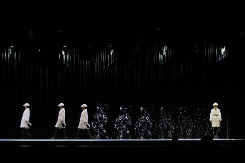 British models Cara Delevingne, Edie Campbell, Jourdan Dunn, Charlie France, Seb Brice and Chinese model Shupei, were joined by life-like holograms of themselves for a visually spectacular runway show where models transformed into snow and disappeared before returning in interchanging outfits.