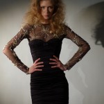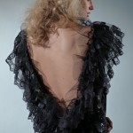 The collection : ballet pinks and blacks with lace and chiffon and light airy creations, glamorous and stunning, with attention to the textures of fabrics, how the light plays on them, as well as deep plunging neck-lines and back-lines, long gowns and mini dresses that reveal almost the entire leg, lace that suggests not-so-discreetly the skin beneath… all with a silhouette that brings us back to what real stars used to look like, the Marylins, the Elizabeths, the Grace Kellys who had bodies worth dressing up. Enough with the waify baggy look, and more of this real lady look!