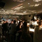 Les heures passent et l’endroit est bien rempli. A l’intérieur, ambiance décontractée et bobo. Un DJ mixe alors que le bar situé sur un îlot central ne désemplit pas. Le chanteur Rachid Taha sort pour griller une clope.