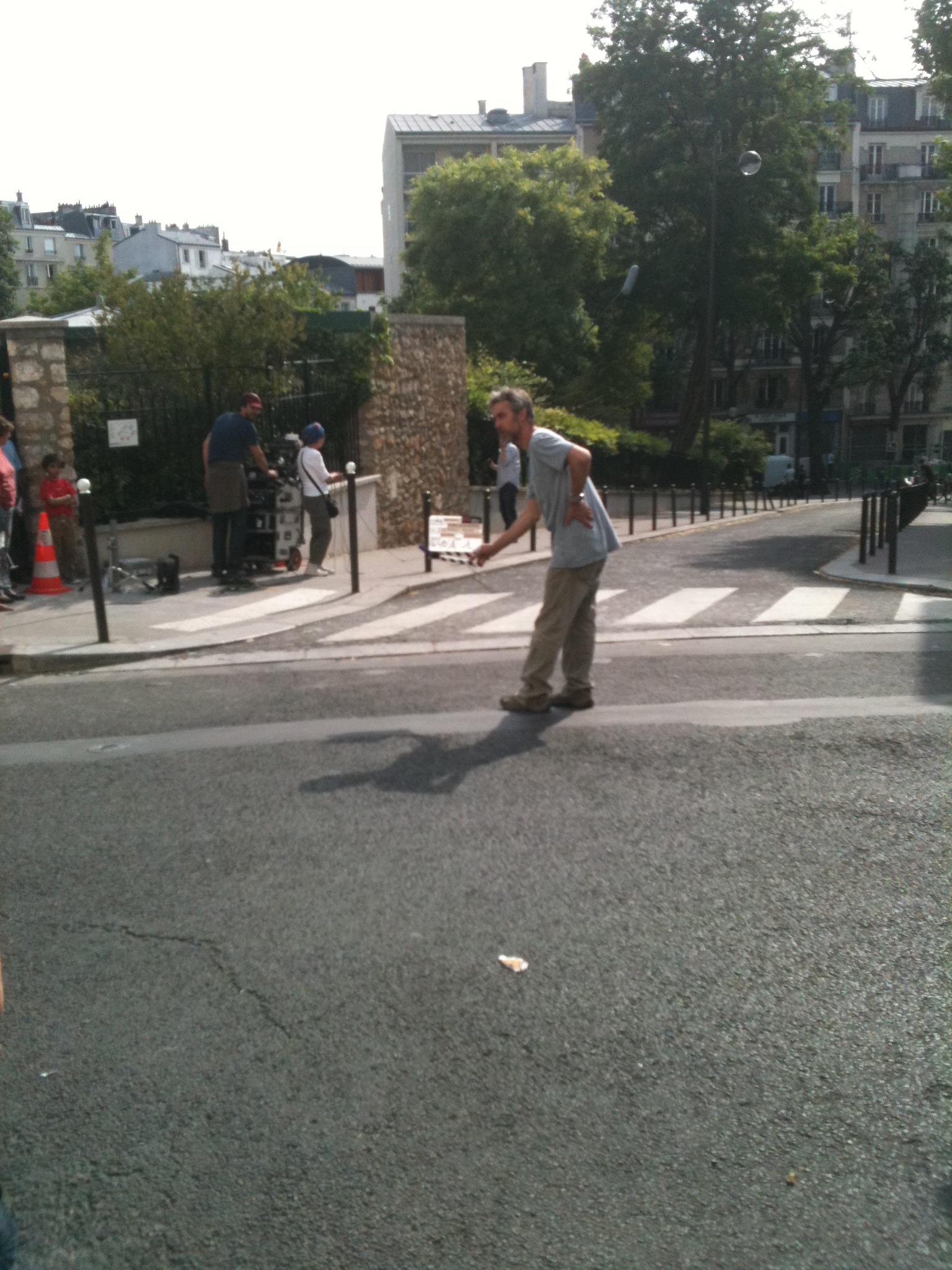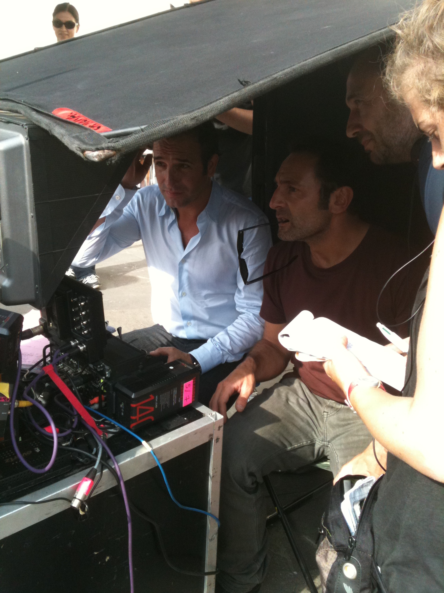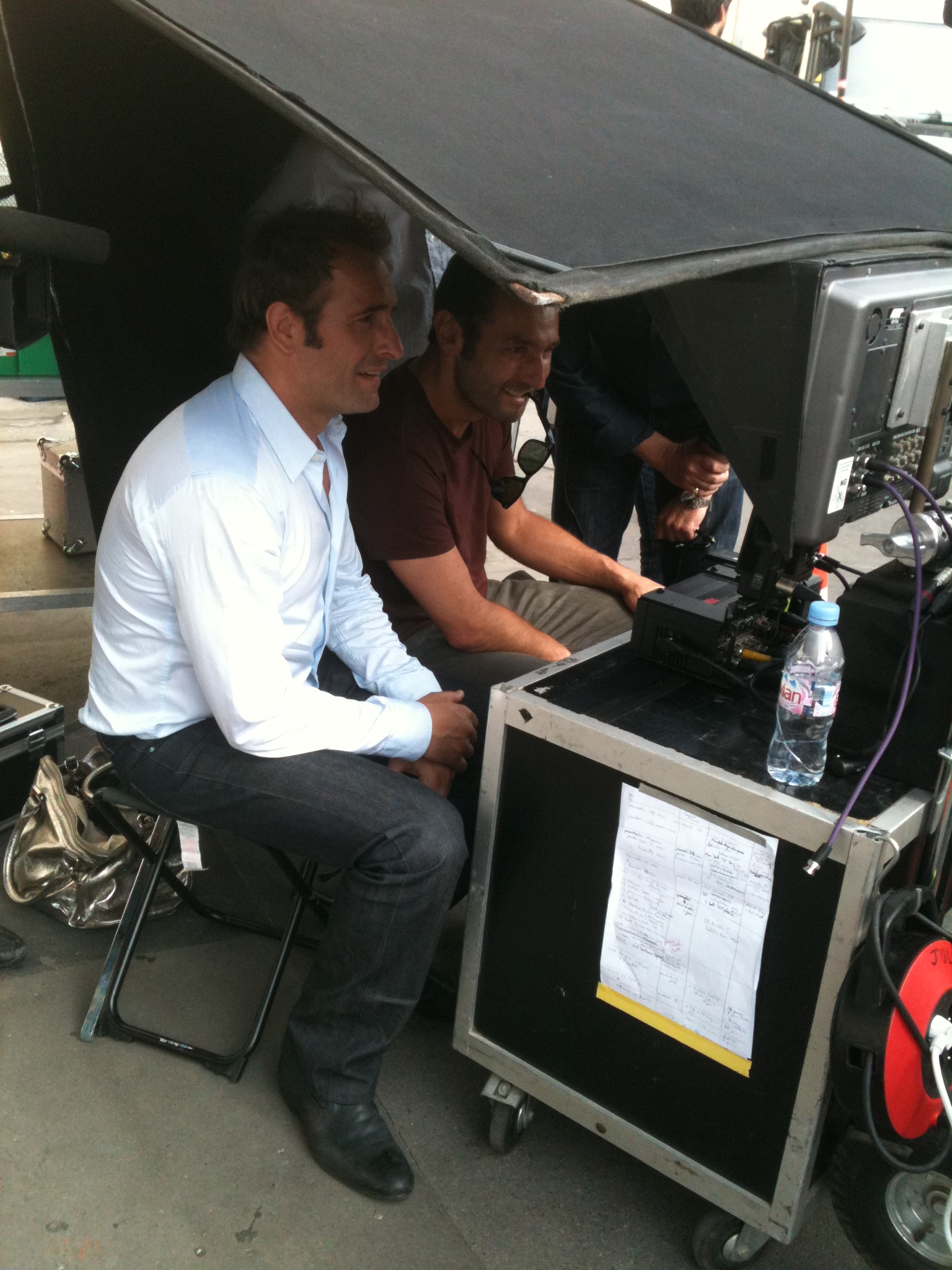 Les deux acteurs sont particulièrement attentifs au résultat de leur prise et n’hésite pas à regarder sur le combo les scènes qu’ils viennent de tourner. Jean Dujardin et Gilles Lellouche sont plutôt détendus et souriant et n’hésitent pas à discuter avec des passants.