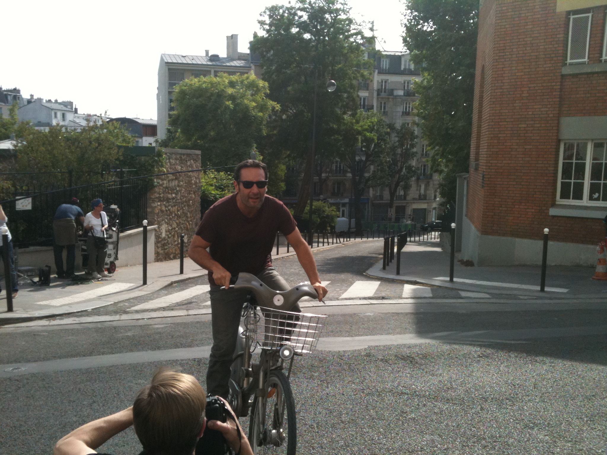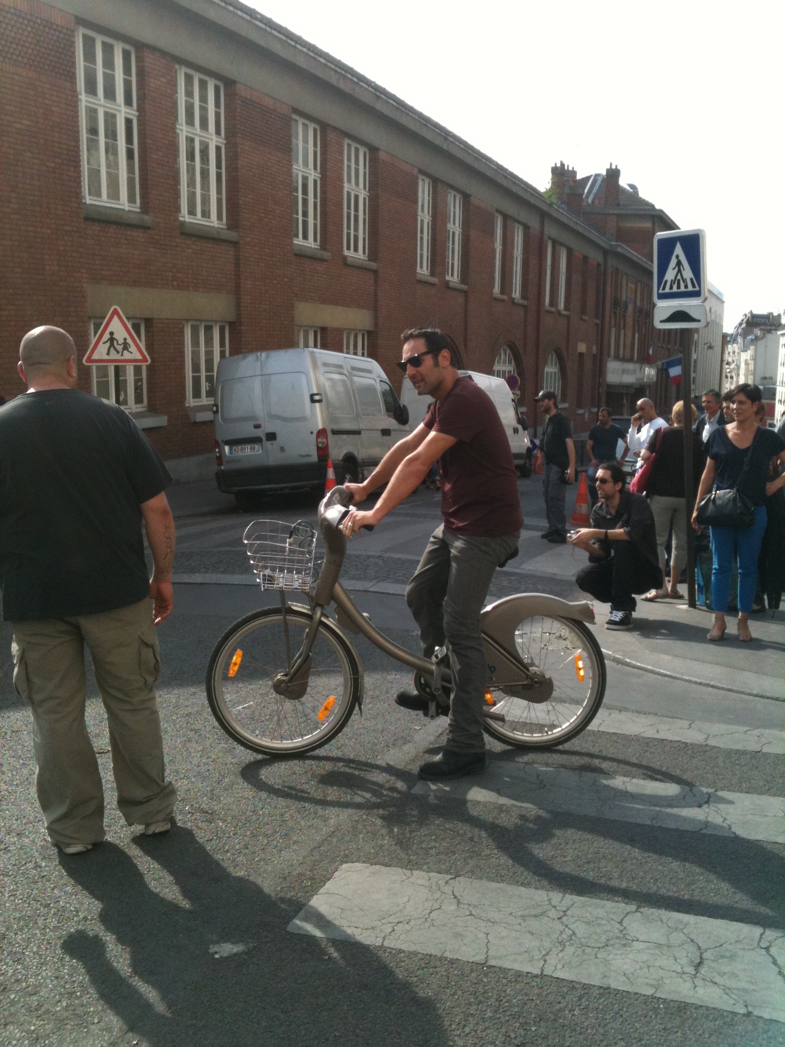 Ce jour là, les deux compères tournaient une scène où ils remontaient une pente en Velib.