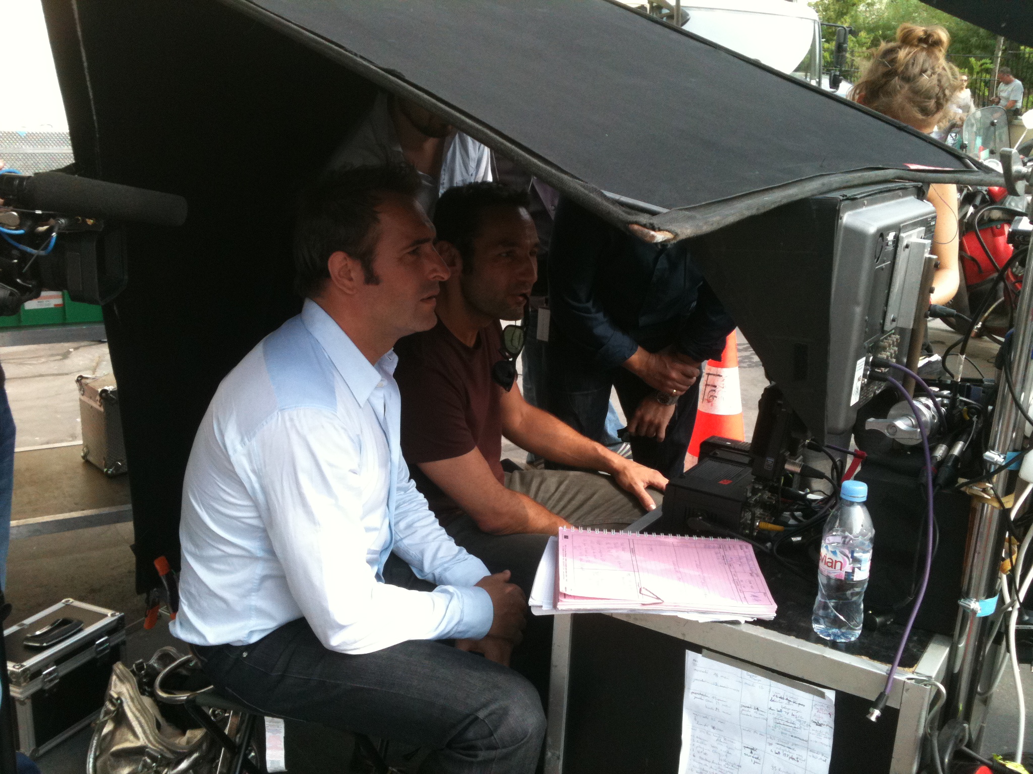 Tout juste revenu de Cannes où il a été consacré meilleur interprète masculin pour « The Artist », Jean Dujardin est à nouveau sur les plateaux. Ce samedi, il tournait avec Gilles Lellouche une scène d’un film à sketchs qui s’intitule « Les infidèles ». Cette comédie traitant de l’infidélité du point de vue masculin sortira dans les salles le 29 février 2012. Plusieurs réalisateurs participent à ce projet. Aux manettes ce jour là Fred Cavayé le réalisateur de « Pour elle » et de « A bout portant », deux excellents polars.
