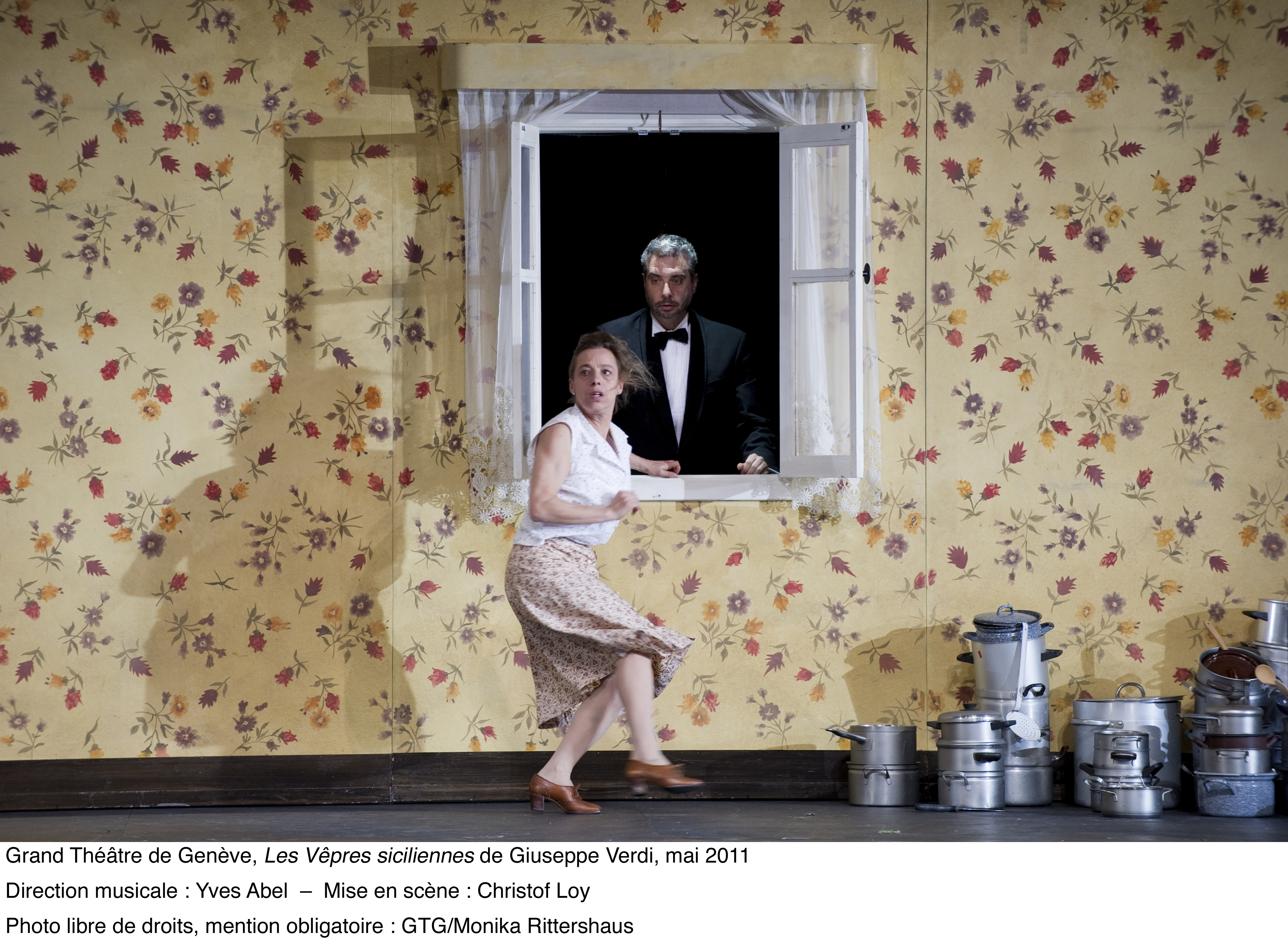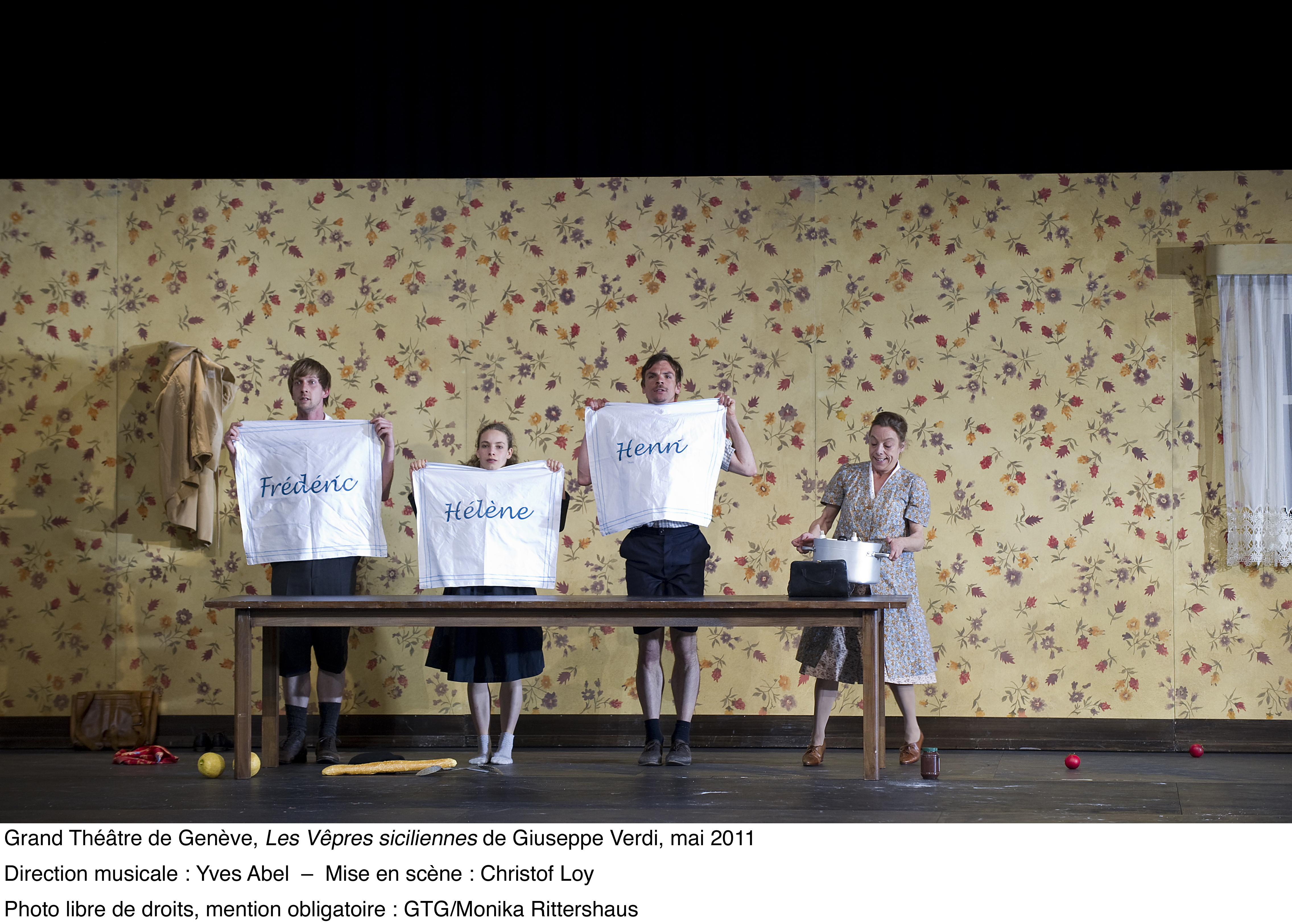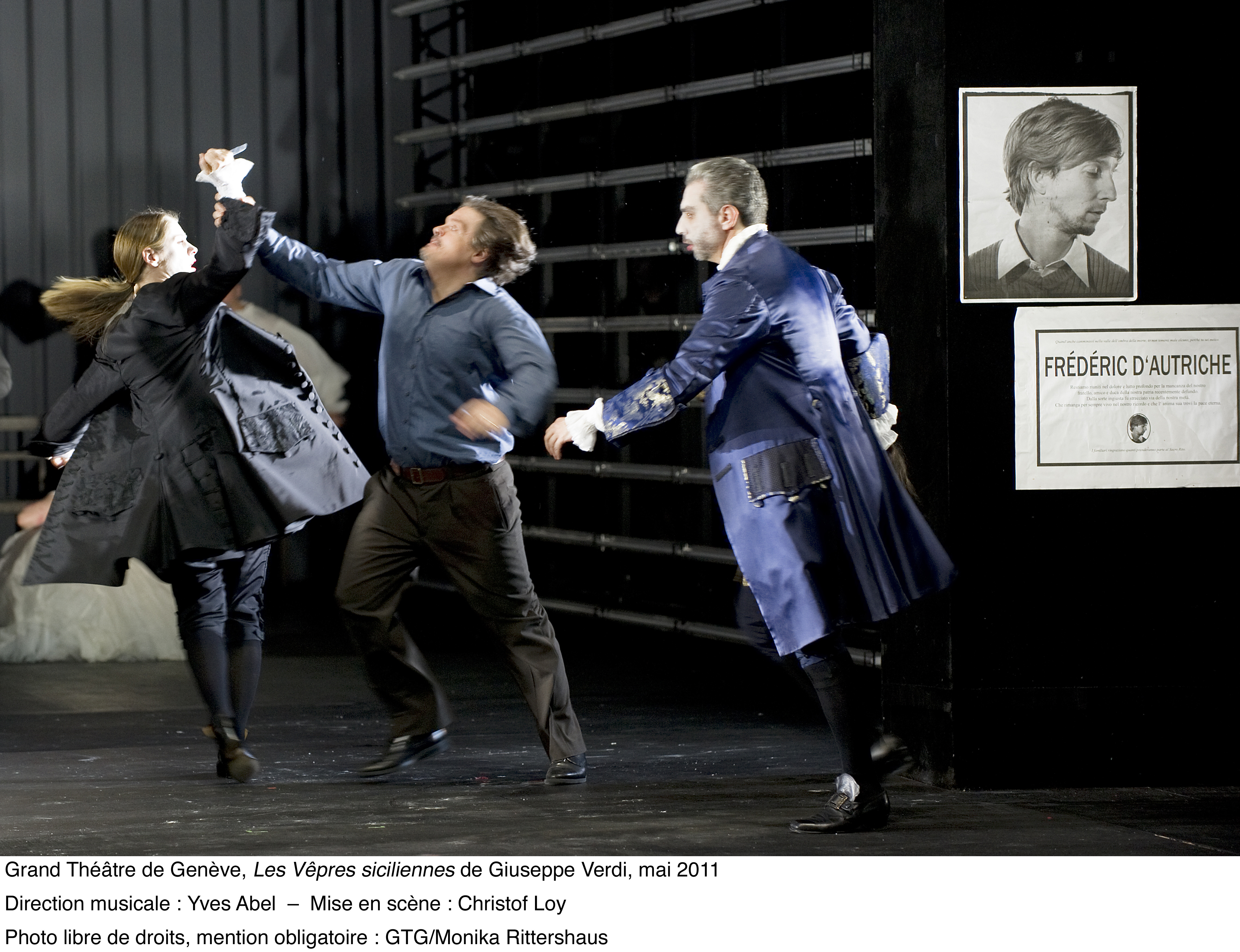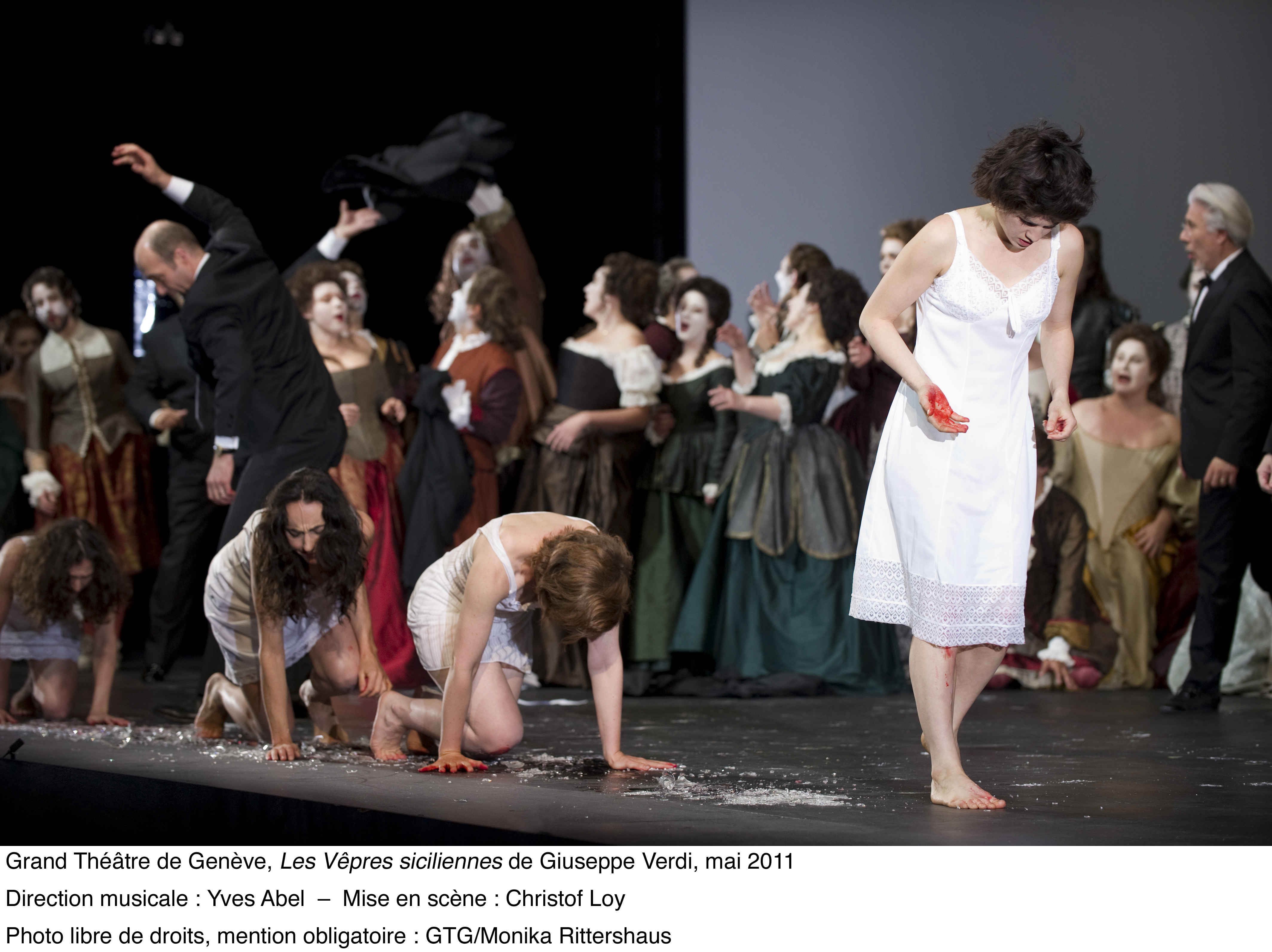 ed ai suoi “400 coups” . Bellissime le scenografie di Johannes Leiaker ed i costumi di Ursula Rezenbrink nonché le coreografie di Thomas Wilhelm e le proiezioni video di Evita Galanou e Thomas Wollenberger . Nei ruoli principali Malyn Bystrom (Hélène), Fernando Portari (Henri), Tassis Christyannis (Guy de Monfort), Balint Szabo (Procida) . Tra le numerose comparse in scena si segnalavano Solange Amstutz e Olga Gorbounova . Fenomenale la prestazione del Coro