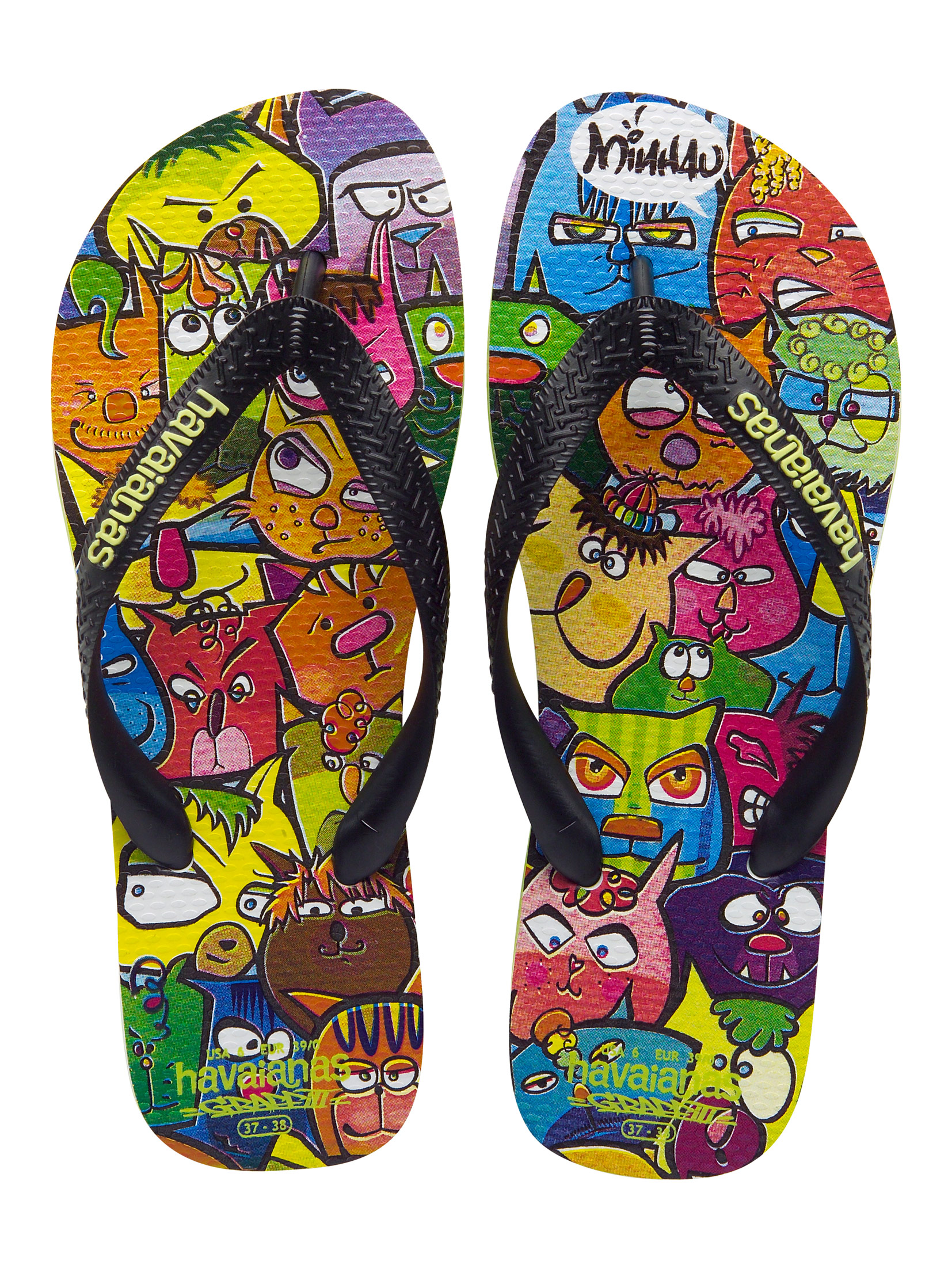Couleur, spontanéité, irrévérence… les trois grands artistes brésiliens, Finök, Chivitz et Minhau, avaient tant en commun avec l’esprit Havaianas que la collaboration était presque inévitable.