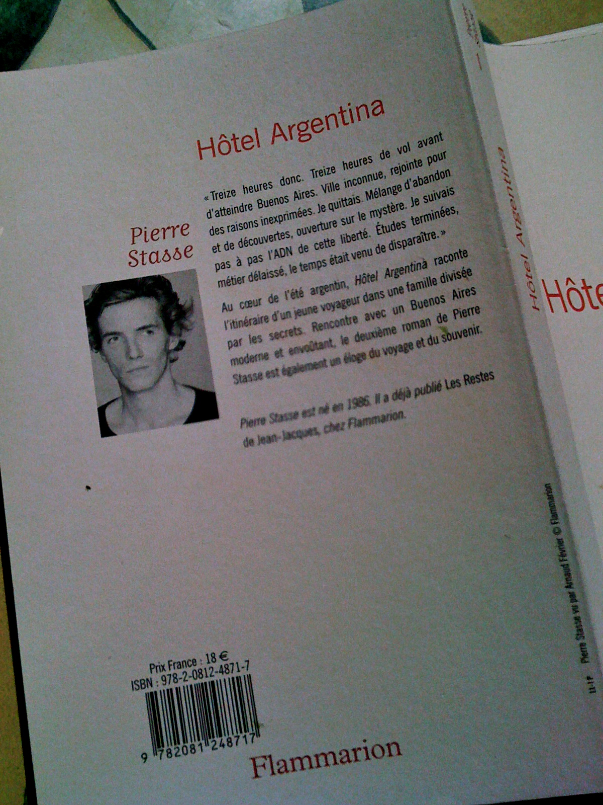 Deuxième roman de Pierre Stasse, Hôtel Argentina est une invitation au voyage irraisonné. Une découverte de Buenos Aires par un jeune homme que la ville et les rencontres vont révéler. La mégapole sud-américaine est assurément le personnage principal du roman : une ville totale, bruyante, où les rixes de quartiers finissent parfois mal.