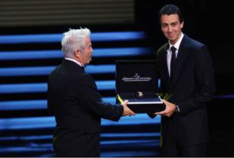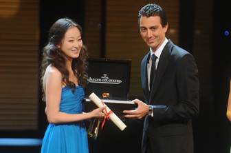 Lors de la Cérémonie de remise de prix du Gobelet d’Or, pour le Festival International du Film de Shanghaï, Monsieur Julien Renard, Directeur Général de Jaeger-LeCoultre en Asie du Nord, remis une montre de la célèbre Manufacture Suisse, la Grande Reverso Ultra Thin, gravée au verso du logo du Festival (SIFF), au Meilleur Acteur Sevket (Turquie) et à la Meilleure Actrice Lu Xingchen (Chine).