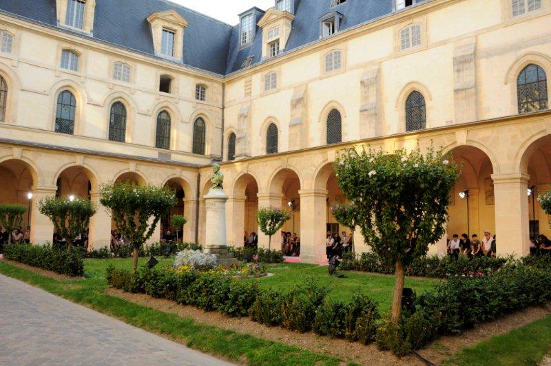 The 30 models walked the arcades central courtyard of Paris’s most prestigious school, and then the 400 guests were treated to supper and champagne in the gardens