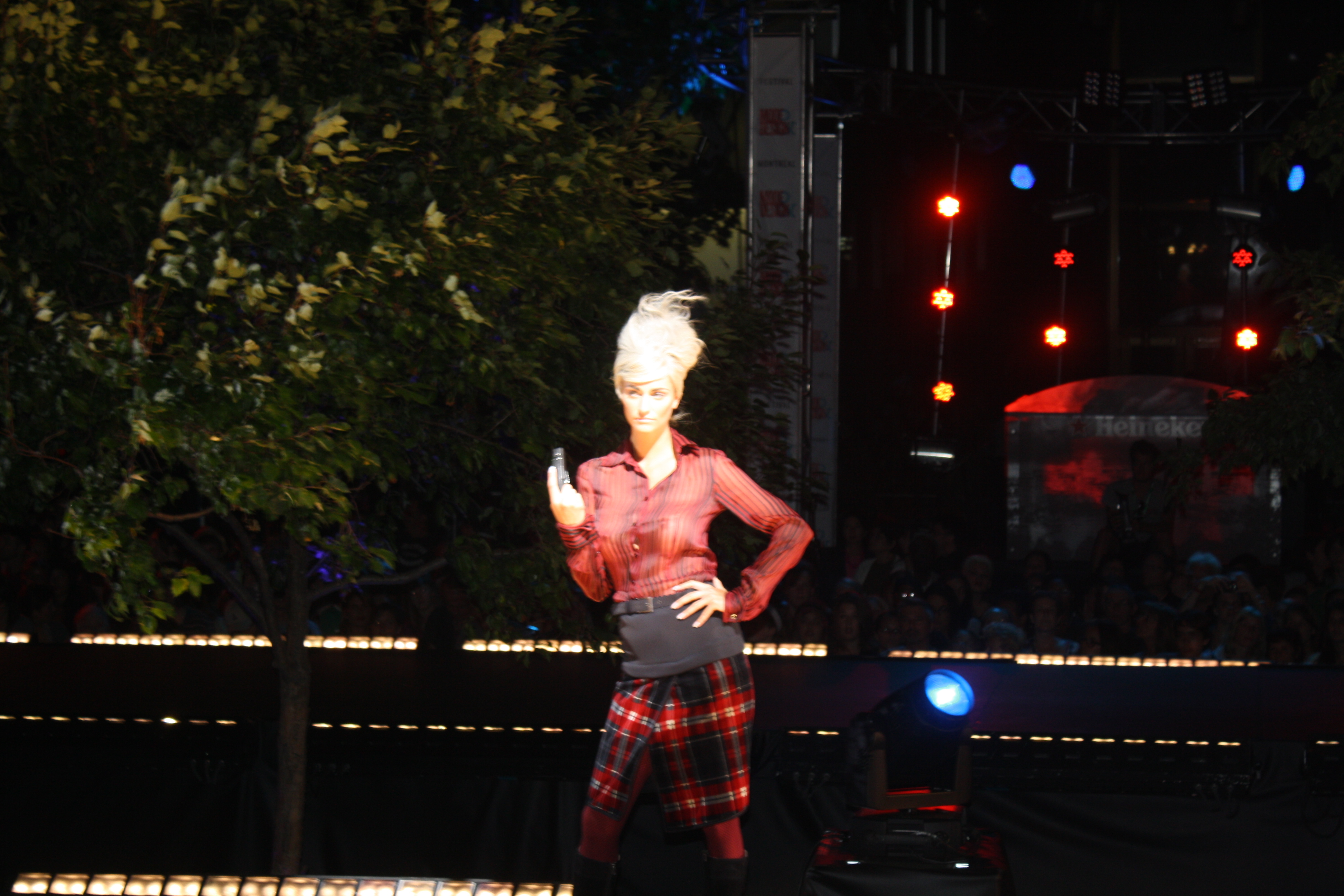 Après avoir sublimé les punks et les rabbins, Gaultier célèbre la femme qui représente à ses yeux, une Parisienne fofolle et légère en apparence. Intitulée Bourgeoises sans âge, la collection est anti jeunisme, sans corset ni peau, pour des femmes qui ne veulent pas ressembler à leur fille de 20 ans. L’avenue Mc-Gill (notre avenue Marceau) était bondée de monde pour ce défilé-performance, en prime time du Jour1 du festival.