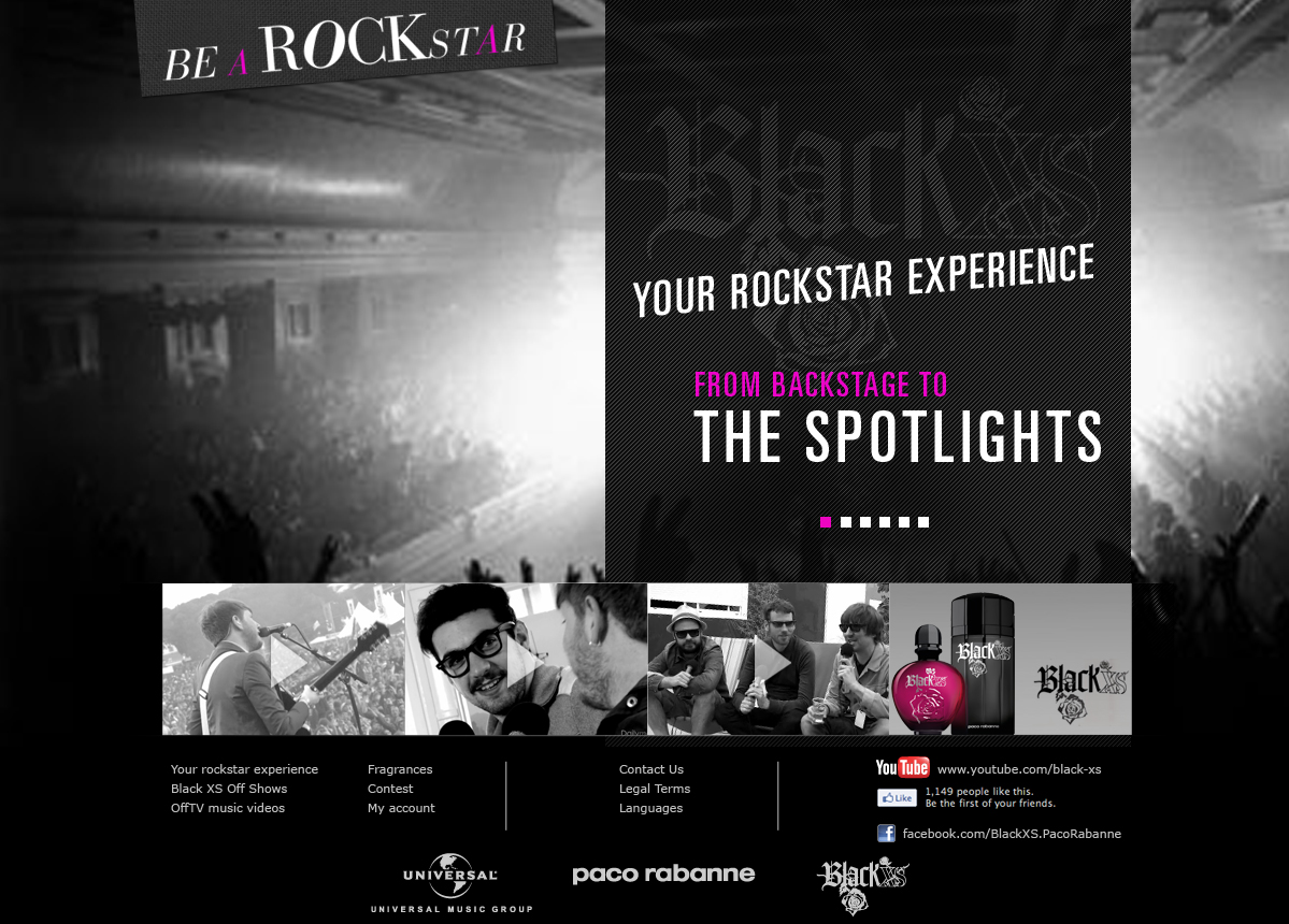 Les parfums Paco Rabanne, en partenariat avec Universal Music, lancent le site www.be-a-rockstar.com en offrant aux internautes un contenu musical exclusif et la possibilité de vivre une expérience unique et d’entrer dans la peau d’une Rock Star ! Un partenariat exclusif : www.be-a-rockstar.com poursuit une aventure musicale entamée dès le lancement de Black XS.