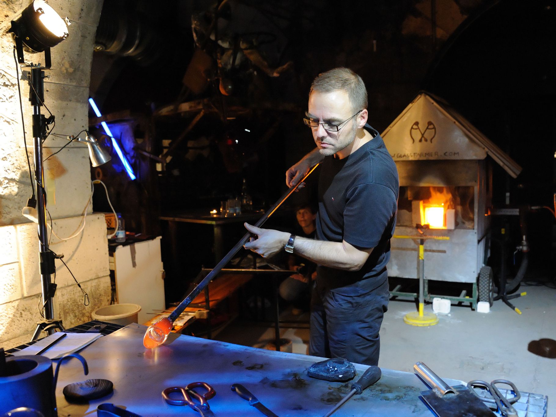 L’occasion pour nous de tester les cocktails Ballantine’s (Green Splash, Bloody Ballantine’s et Pear Velvet). Des mariages vraiment réussis ! L’objet de la soirée était surtout de présenter le nouveau Coffret Prestige Ballantine’s 12 ans. Dans le prolongement des précédentes initiatives artistiques de Ballantine’s et toujours dans l’idée d’imaginer de nouvelles façons de consommer et de servir le whisky, la marque s’est associée cette année à un jeune Maître Verrier, Vincent Breed. S’inspirant de l’art de l’assemblage du Master Blender, ce dernier a conçu des verres droits, cassés par une encoche, s’assemblant harmonieusement autour de la bouteille. Allant encore un peu plus loin dans le concept, Vincent Breed a également travaillé le fond des verres. Chaque verre porte en effet l’empreinte d’un fût, finie à la feuille d’argent. Fidèle à la campagne de pub « Laissez votre empreinte » … Ce soir là une démonstration de soufflage de verre était réalisée. Véritable objet d’art, chaque verre est unique. Le prix fixé pour ce coffret (500€) est à la hauteur de la qualité de ce produit.
