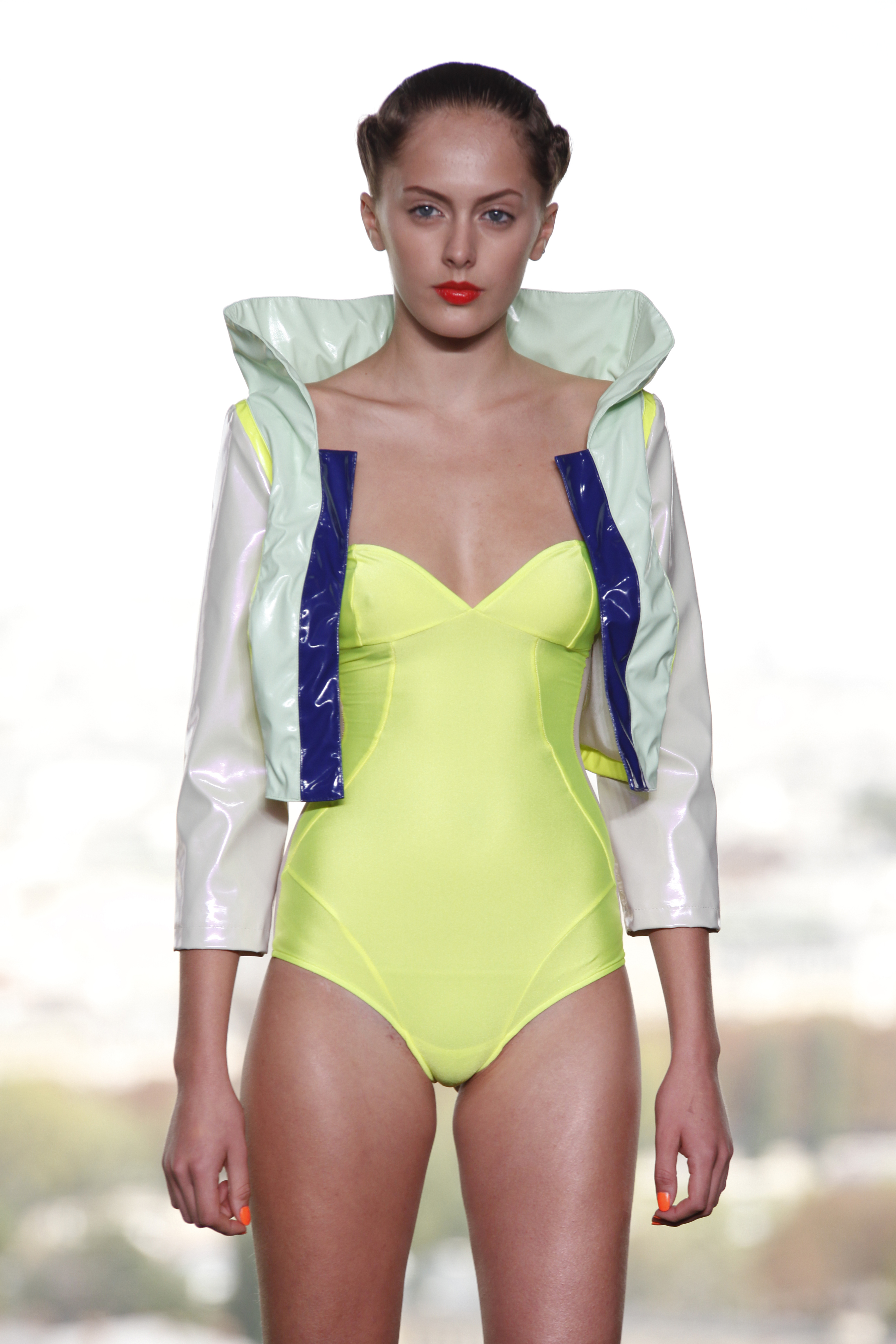 Jouant sur les superpositions, Fatima Lopes nous propose des modèles où on n’aperçoit que ce qu’elle nous autorise à entrevoir. Aussi délicates que des dessous, les premières pièces succombent à une pudique transparence d’où s’échappent quelques touches d’orange, de rose puis de jaune fluorescents.