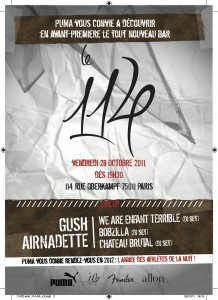 Au programme: un live de “Gush” et des “Airnadette” et un DJ set de “We are Enfant Terrible”, de “Château Brutal” from “Airnadette” et de “Bobzilla”, jusqu’au bout de la nuit !