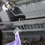 Yohji Yamamoto nous a proposé une collection poétique, hors du temps, et bohème. Inspirée par une certaine esthétique du passé, on se prend à penser aux tableaux du 18eme siècle et à la campagne d’antan. Une époque, loin des crises et empreinte de liberté. La liberté c’était d’ailleurs le maître mot de cette collection, avec pour bande son Georges Moustaki.