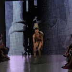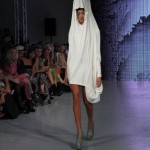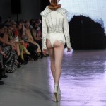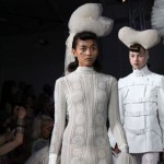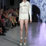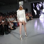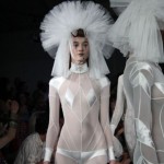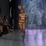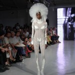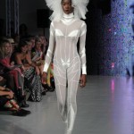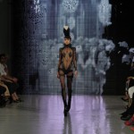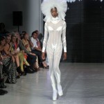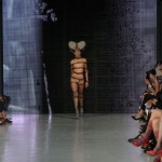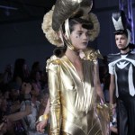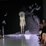 Pour cette collection nommée Notre Dames, Pam Hogg a convoqué Quasimodo, Esmeralda et les dieux du rock n roll pour un spectacle artistique exceptionnel. Une performance d’art plus qu’un défilé, le spectateur s’est retrouvé transporté dans un autre univers, celui du temps des cathédrales.